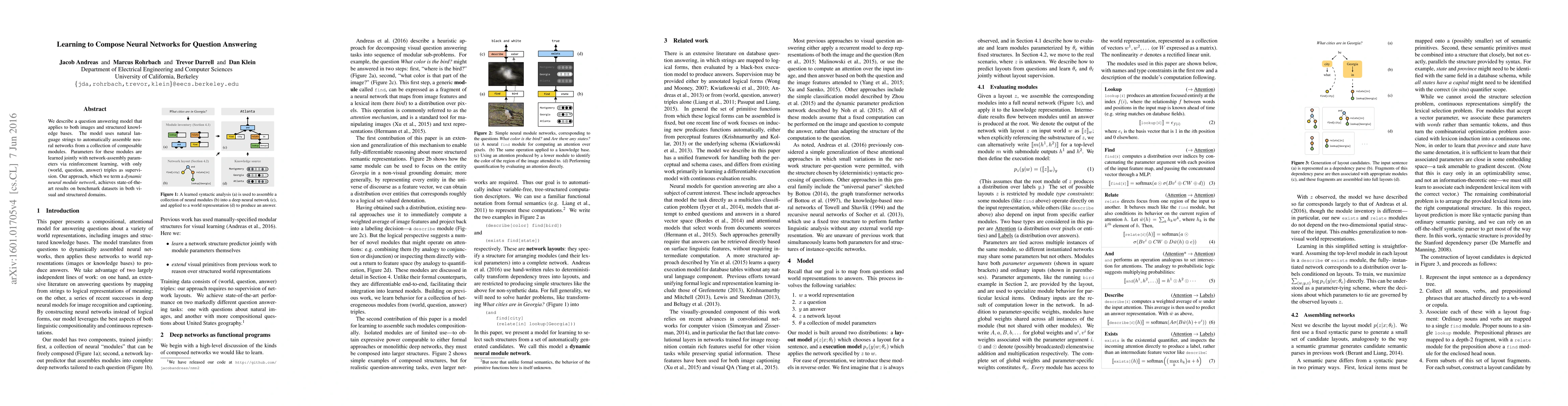 This paper presents a dynamic neural model network that assembles neural networks from composable modules to answer questions from both images and structured knowledge bases, achieving state-of-the-art results using reinforcement learning and minimal supervision.