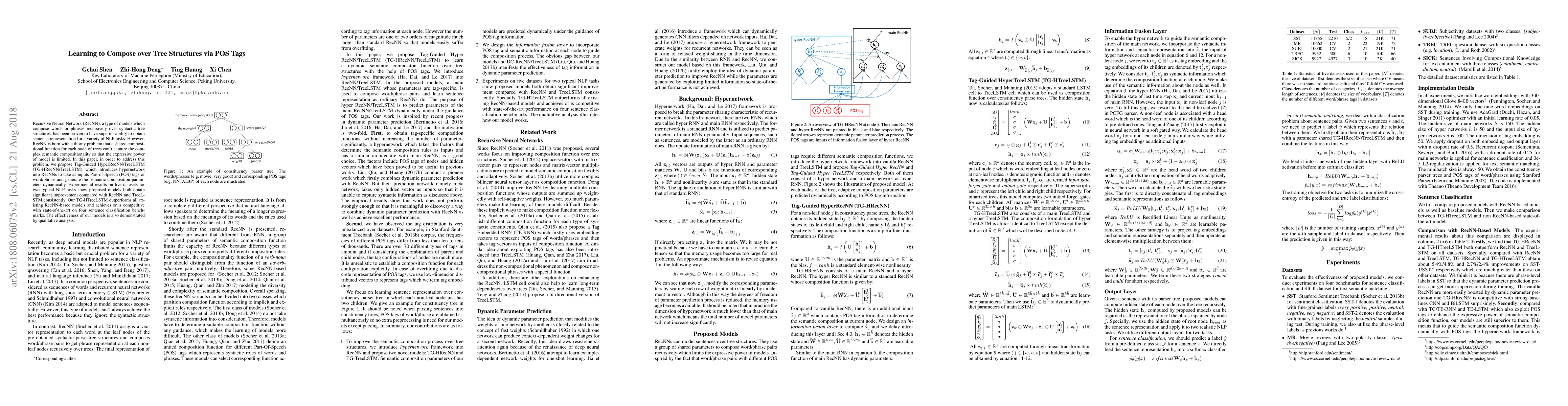 This paper proposes Tag-Guided HyperRecNN/TreeLSTM (TG-HRecNN/TreeLSTM) to enhance Recursive Neural Networks by dynamically generating semantic composition parameters using Part-of-Speech tags, significantly improving performance on various NLP tasks compared to traditional models.