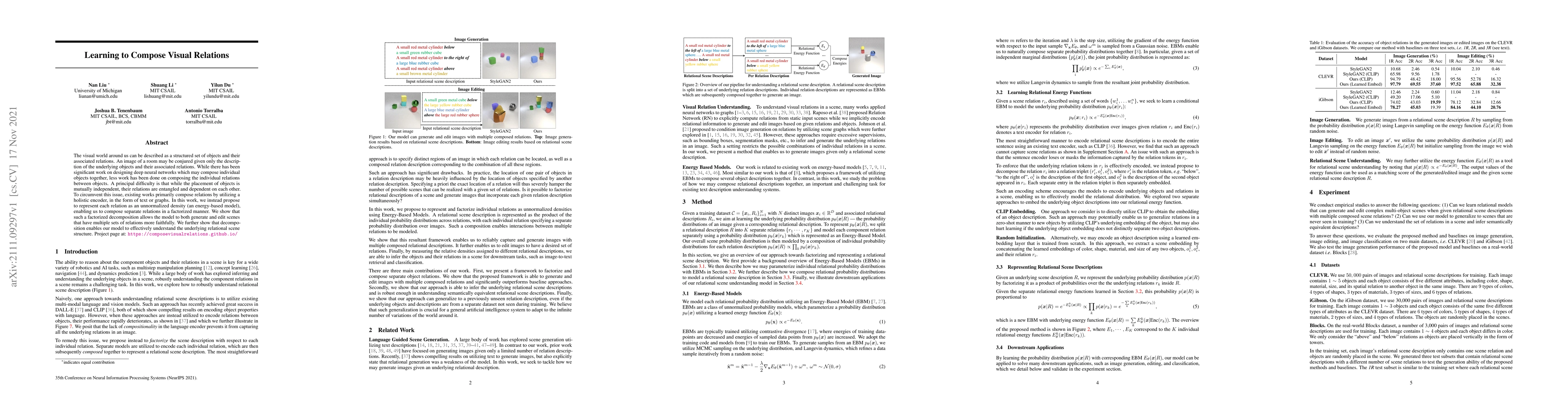This paper proposes a method to represent and compose visual relations between objects using unnormalized densities, enabling a factorized decomposition that allows for more faithful generation and editing of scenes with complex relational structures. The approach effectively understands the relational scene structure by decomposing relations independently.