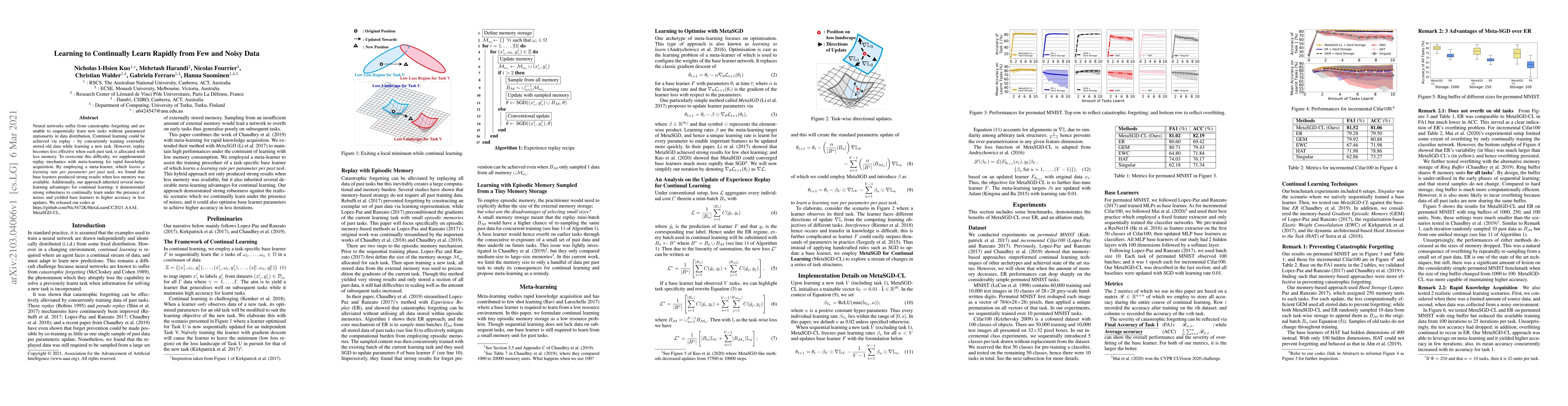 This paper proposes a method to enhance continual learning in neural networks by combining replay with meta-learning. The meta-learner adjusts learning rates to optimize knowledge acquisition, enabling effective learning from limited and noisy data while maintaining high accuracy with fewer updates.