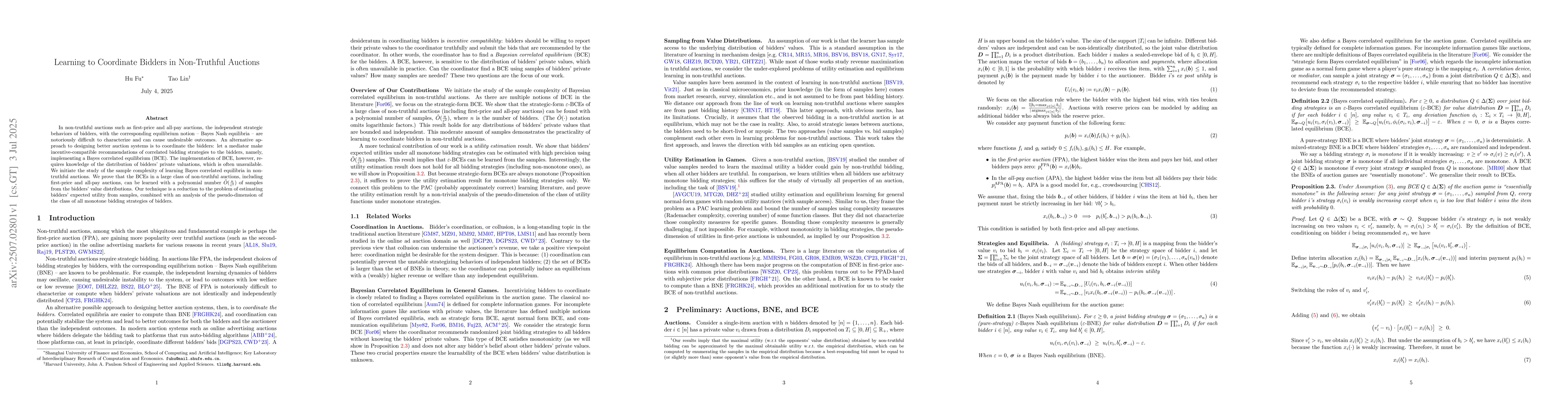 In non-truthful auctions such as first-price and all-pay auctions, the independent strategic behaviors of bidders, with the corresponding equilibrium notion -- Bayes Nash equilibria -- are notoriously difficult to characterize and can cause undesirable outcomes. An alternative approach to designing better auction systems is to coordinate the bidders: let a mediator make incentive-compatible recommendations of correlated bidding strategies to the bidders, namely, implementing a Bayes correlated equilibrium (BCE). The implementation of BCE, however, requires knowledge of the distribution of bidders' private valuations, which is often unavailable. We initiate the study of the sample complexity of learning Bayes correlated equilibria in non-truthful auctions. We prove that the BCEs in a large class of non-truthful auctions, including first-price and all-pay auctions, can be learned with a polynomial number $\tilde O(\frac{n}{\varepsilon^2})$ of samples from the bidders' value distributions. Our technique is a reduction to the problem of estimating bidders' expected utility from samples, combined with an analysis of the pseudo-dimension of the class of all monotone bidding strategies of bidders.