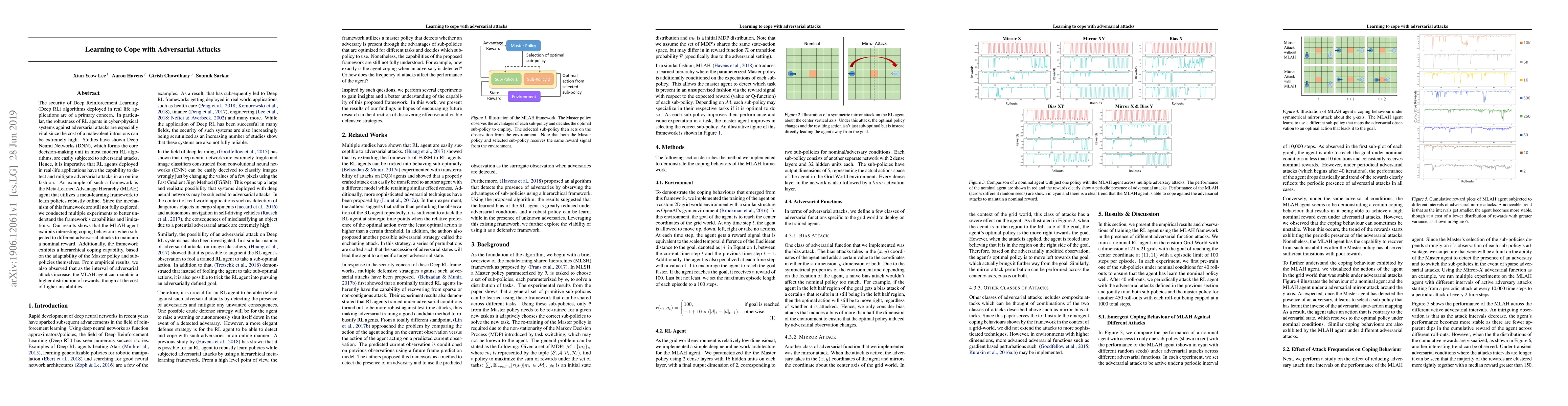 The security of Deep Reinforcement Learning (Deep RL) algorithms deployed in real life applications are of a primary concern. In particular, the robustness of RL agents in cyber-physical systems against adversarial attacks are especially vital since the cost of a malevolent intrusions can be extremely high. Studies have shown Deep Neural Networks (DNN), which forms the core decision-making unit in most modern RL algorithms, are easily subjected to adversarial attacks. Hence, it is imperative that RL agents deployed in real-life applications have the capability to detect and mitigate adversarial attacks in an online fashion. An example of such a framework is the Meta-Learned Advantage Hierarchy (MLAH) agent that utilizes a meta-learning framework to learn policies robustly online. Since the mechanism of this framework are still not fully explored, we conducted multiple experiments to better understand the framework's capabilities and limitations. Our results shows that the MLAH agent exhibits interesting coping behaviors when subjected to different adversarial attacks to maintain a nominal reward. Additionally, the framework exhibits a hierarchical coping capability, based on the adaptability of the Master policy and sub-policies themselves. From empirical results, we also observed that as the interval of adversarial attacks increase, the MLAH agent can maintain a higher distribution of rewards, though at the cost of higher instabilities.