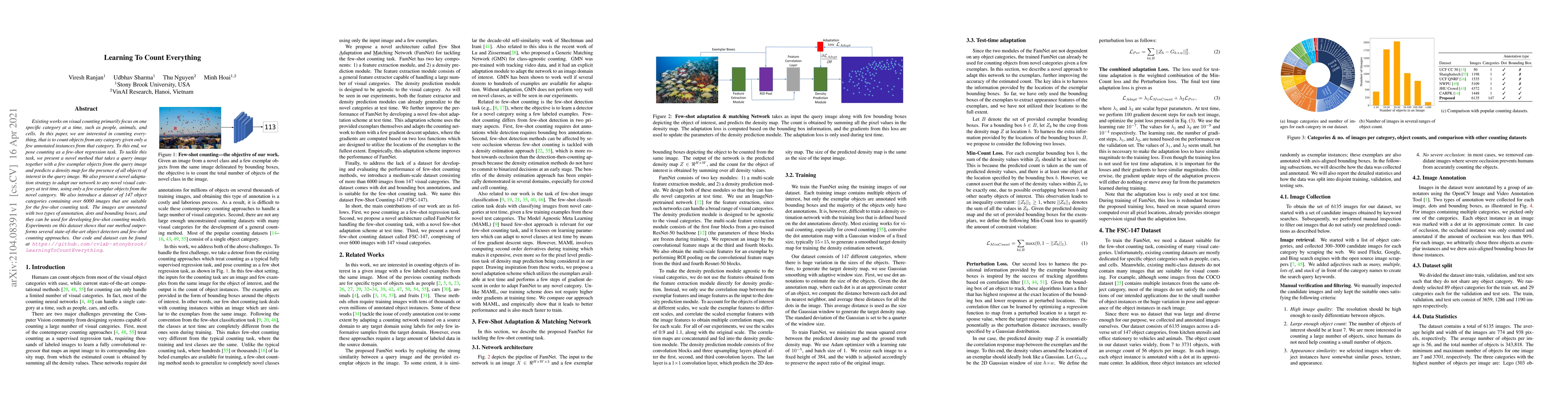 The research poses counting as a few-shot regression task, introducing a novel method that predicts a density map for objects of interest using a query image and a few exemplar objects. It also presents an adaptation strategy to adapt the network to novel categories at test time with few exemplars.