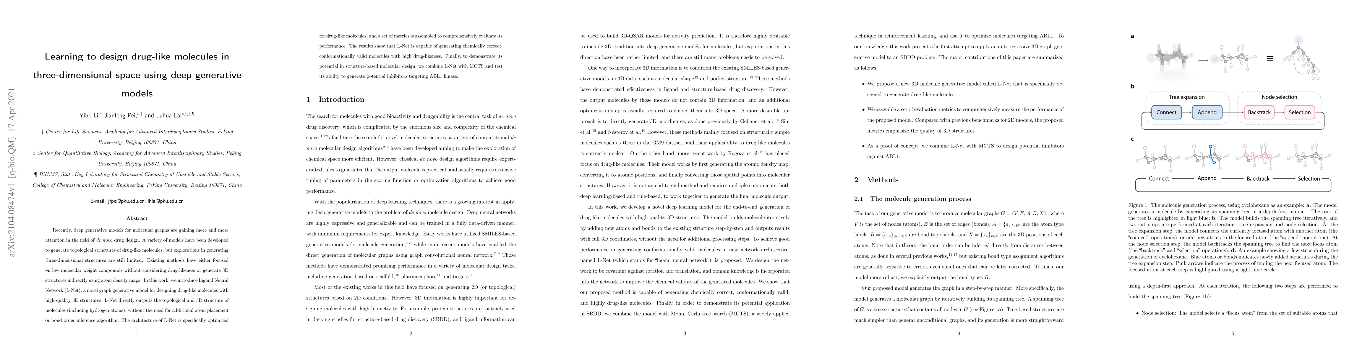 This paper introduces Ligand Neural Network (L-Net), a deep generative model that directly generates high-quality 3D structures of drug-like molecules, optimizing both topological and conformational accuracy. L-Net's performance is demonstrated through its ability to create valid molecules and potential inhibitors for ABL1 kinase.