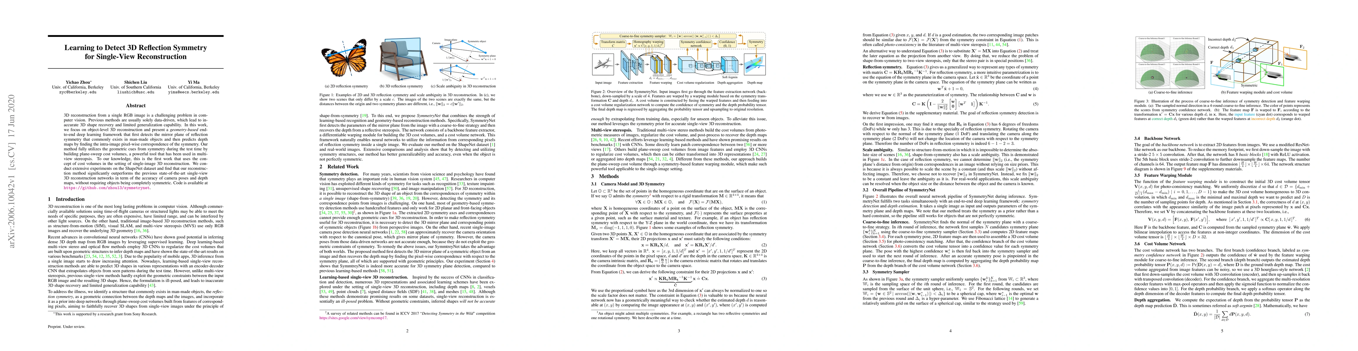 This paper introduces a deep learning framework for 3D reconstruction from a single RGB image by detecting reflection symmetry to enhance accuracy and generalization. The method uses plane-sweep cost volumes to leverage geometric cues from symmetry, outperforming previous state-of-the-art in accuracy without requiring perfect symmetry.