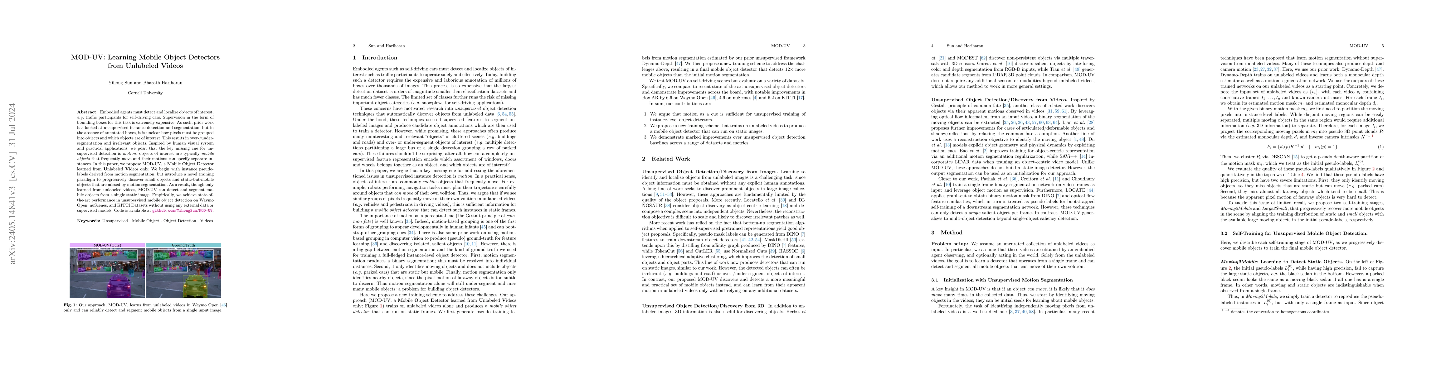 This paper proposes MOD-UV, an unsupervised method to detect and segment mobile objects in videos using only unlabeled data, leveraging motion as a key cue. The approach progressively refines object detection, achieving state-of-the-art results on multiple datasets without supervision or external data.