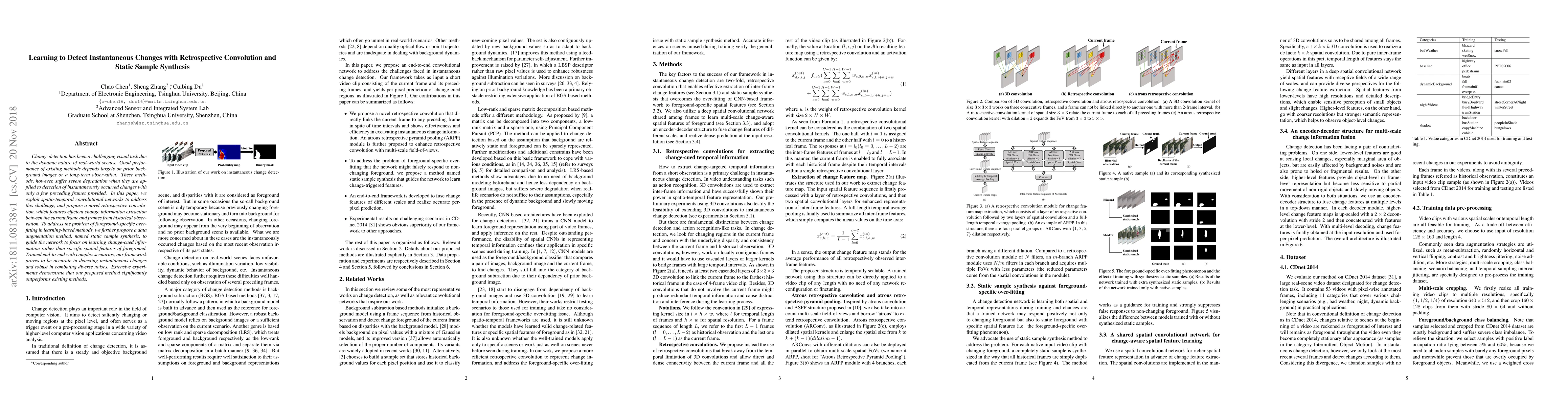 This paper proposes a novel retrospective convolution and static sample synthesis method to detect instantaneous changes in dynamic scenes using spatio-temporal convolutional networks, outperforming existing methods in accuracy and robustness. The approach mitigates overfitting to foreground features by focusing on change-cued information.