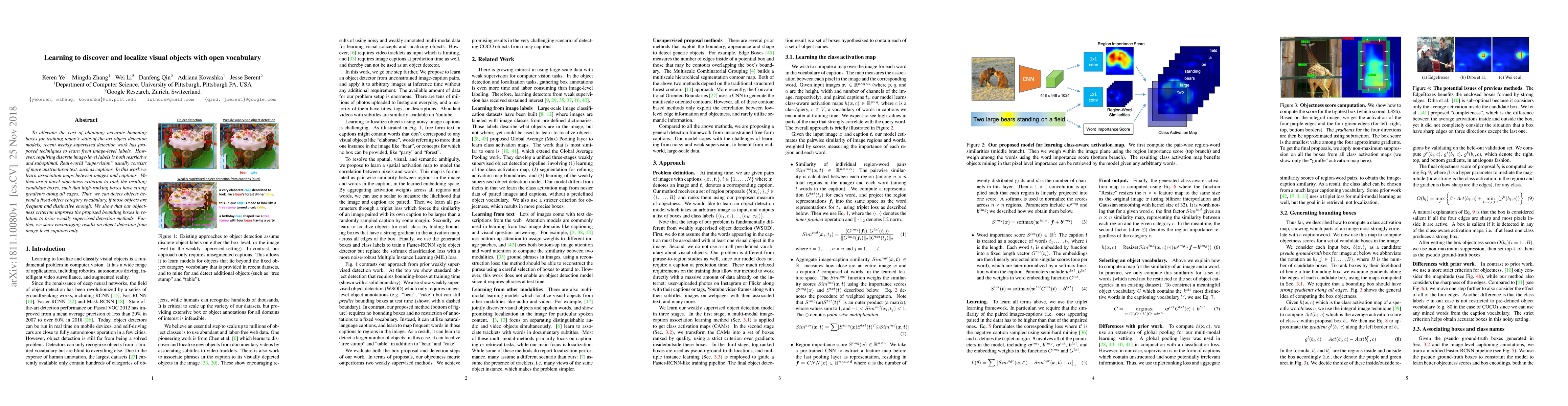 This paper proposes a method to detect and localize visual objects using unstructured text captions instead of restrictive image-level labels, leveraging association maps and a novel objectness criterion to rank candidate boxes. The approach demonstrates improved detection performance compared to prior weakly supervised methods.