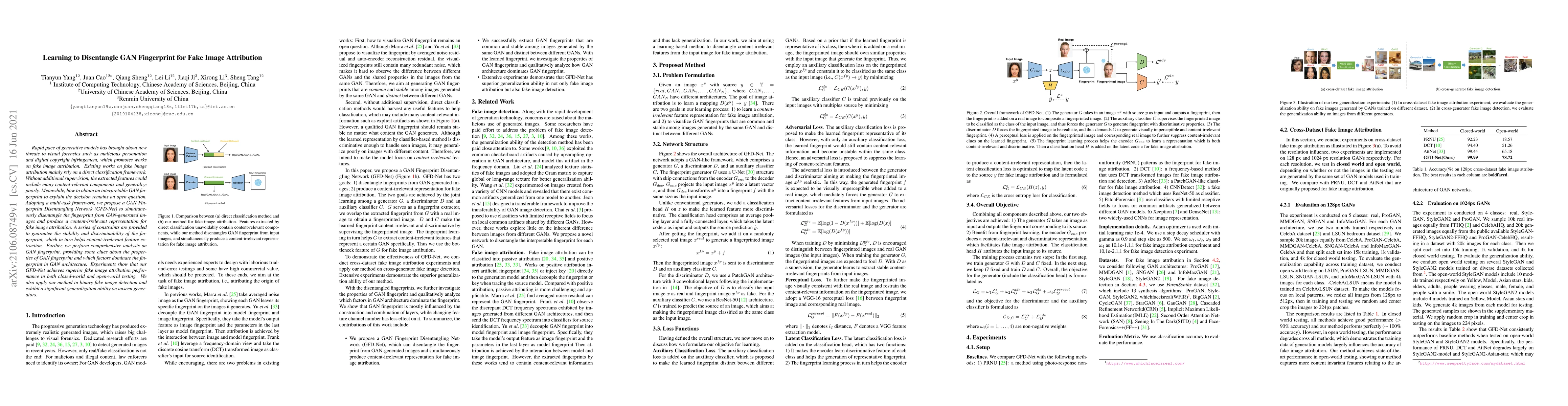 The paper proposes a GAN Fingerprint Disentangling Network (GFD-Net) to improve fake image attribution by disentangling content-irrelevant fingerprints from GAN-generated images, achieving superior performance in both closed-world and open-world testing, and demonstrating generalization to unseen generators.