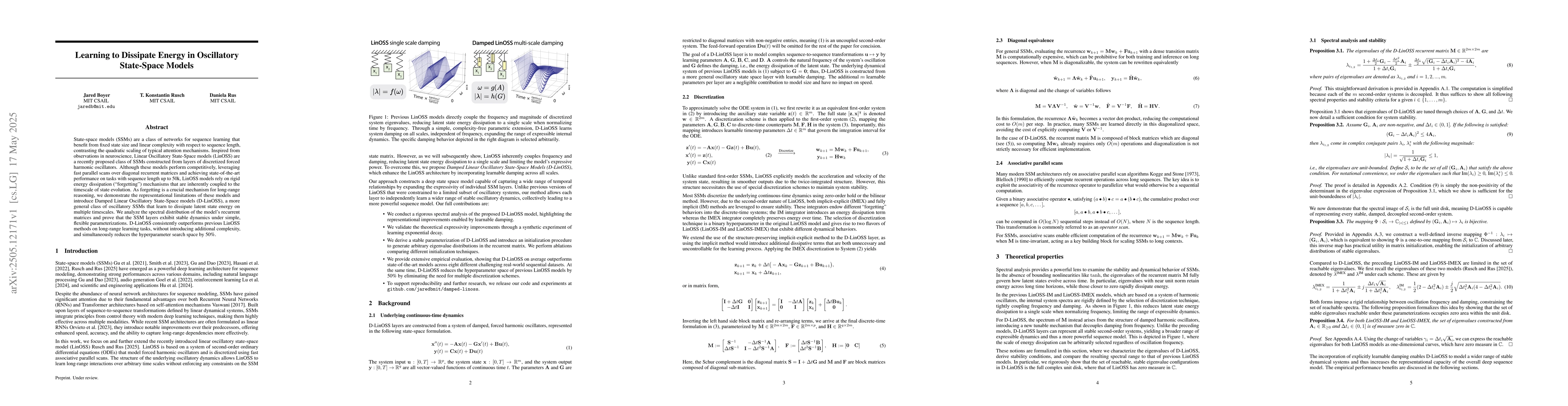 Researchers developed a new class of state-space models called Damped Linear Oscillatory State-Space models that can learn to dissipate energy on multiple timescales, outperforming previous methods on long-range learning tasks.