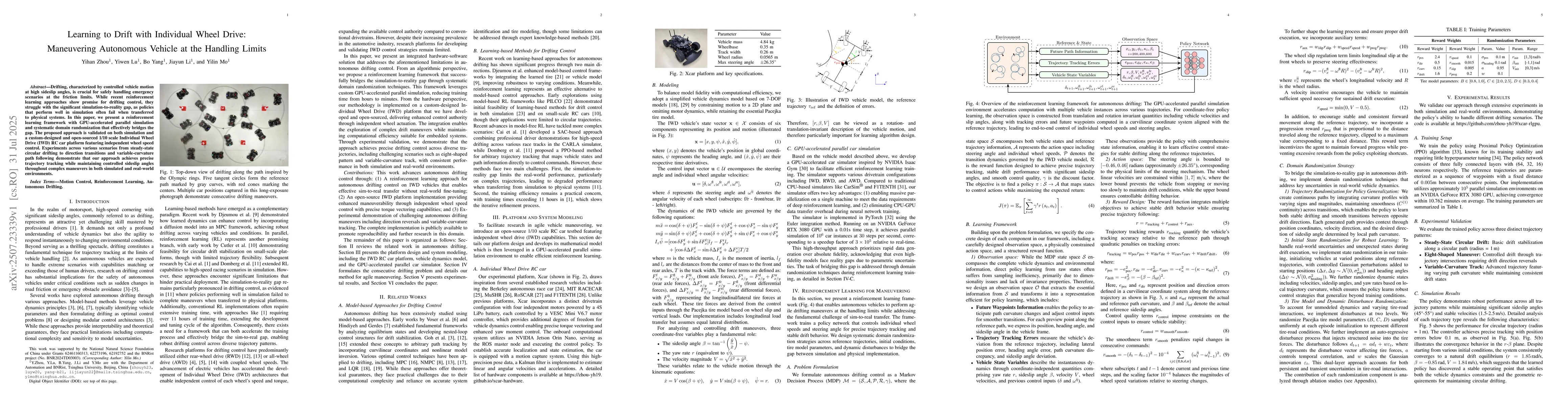 Drifting, characterized by controlled vehicle motion at high sideslip angles, is crucial for safely handling emergency scenarios at the friction limits. While recent reinforcement learning approaches show promise for drifting control, they struggle with the significant simulation-to-reality gap, as policies that perform well in simulation often fail when transferred to physical systems. In this paper, we present a reinforcement learning framework with GPU-accelerated parallel simulation and systematic domain randomization that effectively bridges the gap. The proposed approach is validated on both simulation and a custom-designed and open-sourced 1/10 scale Individual Wheel Drive (IWD) RC car platform featuring independent wheel speed control. Experiments across various scenarios from steady-state circular drifting to direction transitions and variable-curvature path following demonstrate that our approach achieves precise trajectory tracking while maintaining controlled sideslip angles throughout complex maneuvers in both simulated and real-world environments.