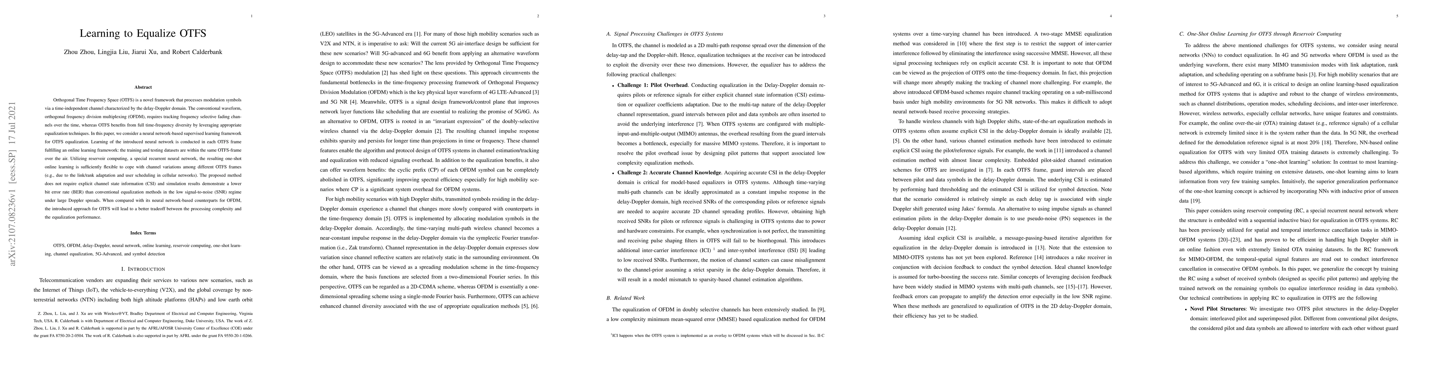 This paper proposes a neural network-based supervised learning framework for Orthogonal Time Frequency Space (OTFS) equalization, utilizing reservoir computing for one-shot online learning to handle channel variations. The method achieves lower bit error rates than conventional techniques and offers a better trade-off between complexity and performance compared to OFDM-based methods.