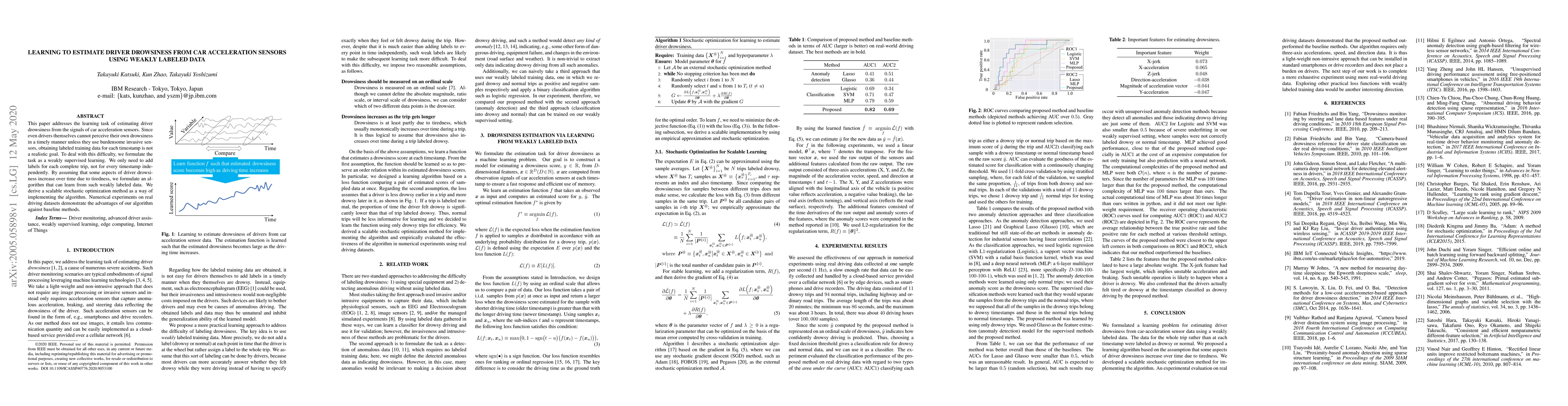 This paper proposes a weakly supervised learning approach to estimate driver drowsiness from car acceleration sensor data, using only trip-level labels instead of timestamp-specific labels. The method leverages an assumption that drowsiness increases over time and employs a scalable stochastic optimization technique, which outperforms baseline methods in experiments on real driving datasets.
