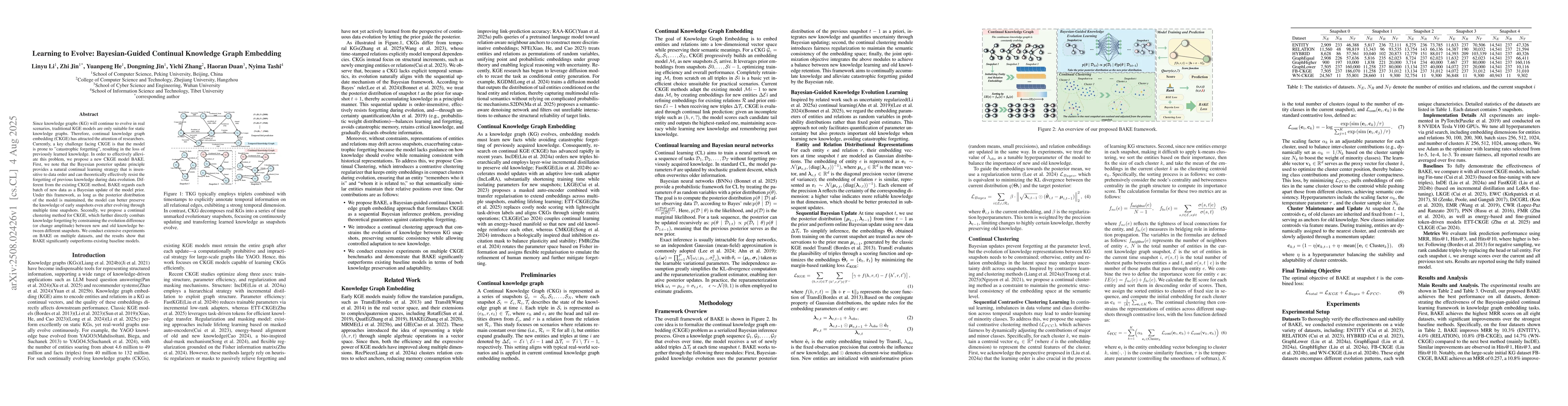 This research is significant as it proposes a novel Bayesian-guided continual KGE model that effectively mitigates catastrophic forgetting in evolving knowledge graphs, preserving both old and new knowledge.