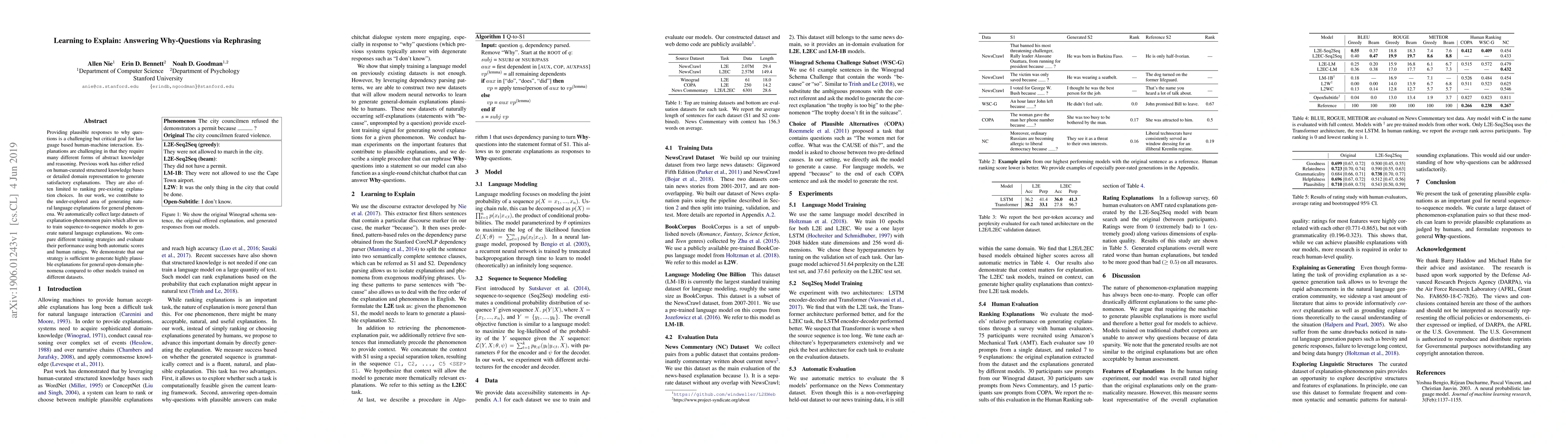 This research introduces a method to automatically generate natural language explanations for general phenomena, training sequence-to-sequence models on large datasets of explanation-phenomenon pairs. It compares different training strategies and shows that the proposed method generates highly plausible explanations for open-domain topics, outperforming other models.