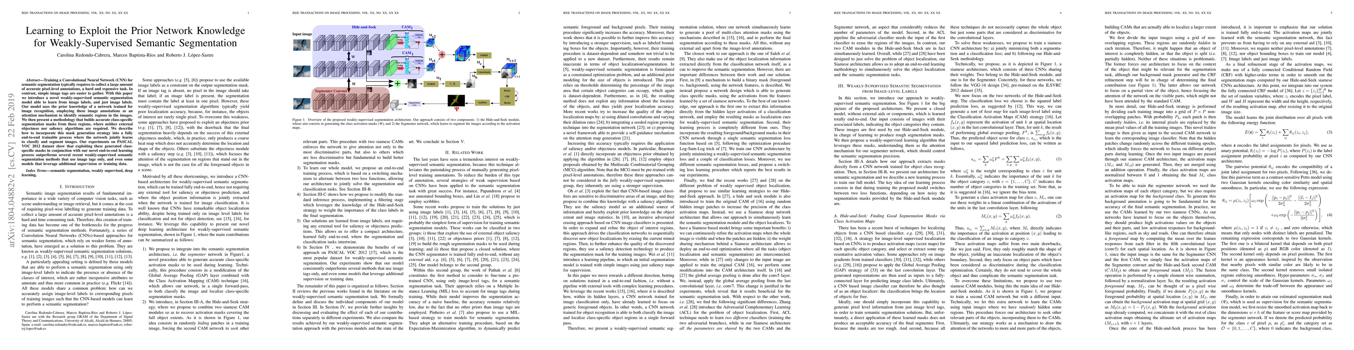 This paper proposes a weakly-supervised semantic segmentation model that learns from simple image tags, leveraging prior network knowledge from image recognition to identify semantic regions. The method generates accurate segmentation masks without external objectness or saliency algorithms, achieving superior performance compared to other methods on the PASCAL VOC 2012 dataset.