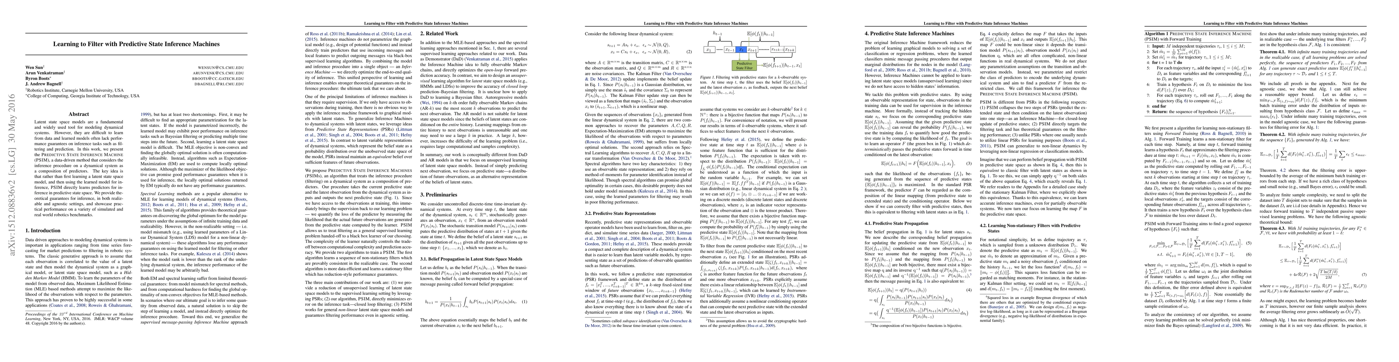 This paper introduces the PREDICTIVE STATE INFERENCE MACHINE (PSIM), a data-driven method that directly learns predictors for inference in predictive state space, bypassing the traditional latent state space model learning. It provides theoretical guarantees for inference and demonstrates practical performance on robotics benchmarks.
