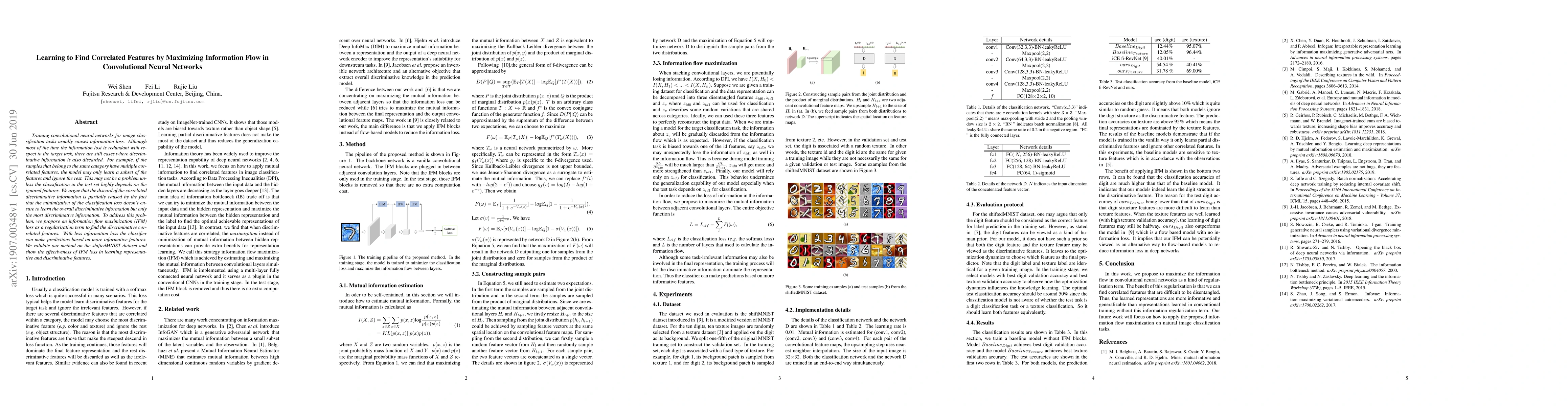 Training convolutional neural networks for image classification tasks usually causes information loss. Although most of the time the information lost is redundant with respect to the target task, there are still cases where discriminative information is also discarded. For example, if the samples that belong to the same category have multiple correlated features, the model may only learn a subset of the features and ignore the rest. This may not be a problem unless the classification in the test set highly depends on the ignored features. We argue that the discard of the correlated discriminative information is partially caused by the fact that the minimization of the classification loss doesn't ensure to learn the overall discriminative information but only the most discriminative information. To address this problem, we propose an information flow maximization (IFM) loss as a regularization term to find the discriminative correlated features. With less information loss the classifier can make predictions based on more informative features. We validate our method on the shiftedMNIST dataset and show the effectiveness of IFM loss in learning representative and discriminative features.