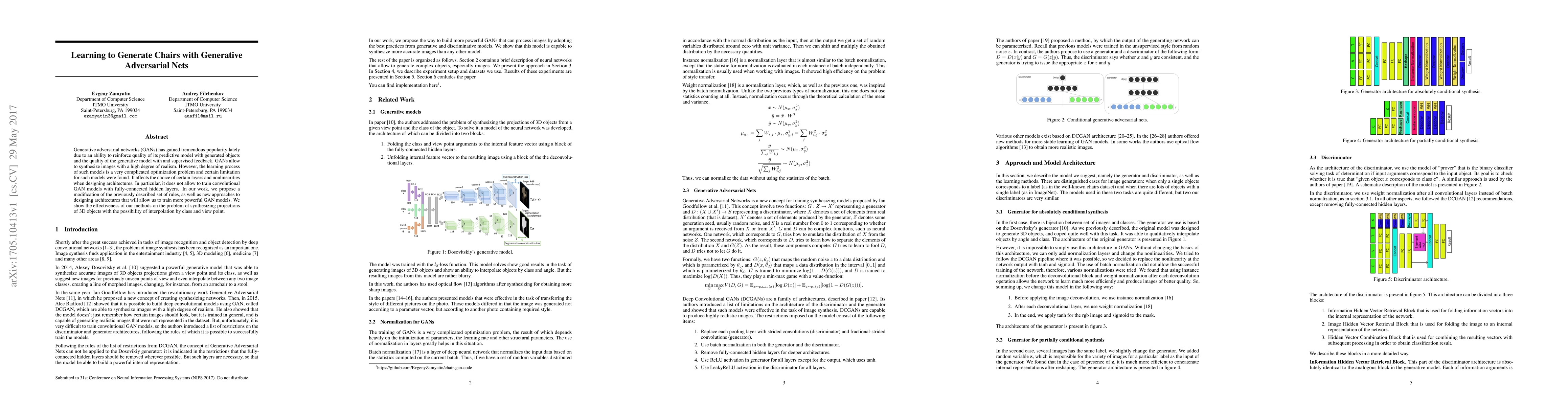 Generative adversarial networks (GANs) has gained tremendous popularity lately due to an ability to reinforce quality of its predictive model with generated objects and the quality of the generative model with and supervised feedback. GANs allow to synthesize images with a high degree of realism. However, the learning process of such models is a very complicated optimization problem and certain limitation for such models were found. It affects the choice of certain layers and nonlinearities when designing architectures. In particular, it does not allow to train convolutional GAN models with fully-connected hidden layers. In our work, we propose a modification of the previously described set of rules, as well as new approaches to designing architectures that will allow us to train more powerful GAN models. We show the effectiveness of our methods on the problem of synthesizing projections of 3D objects with the possibility of interpolation by class and view point.