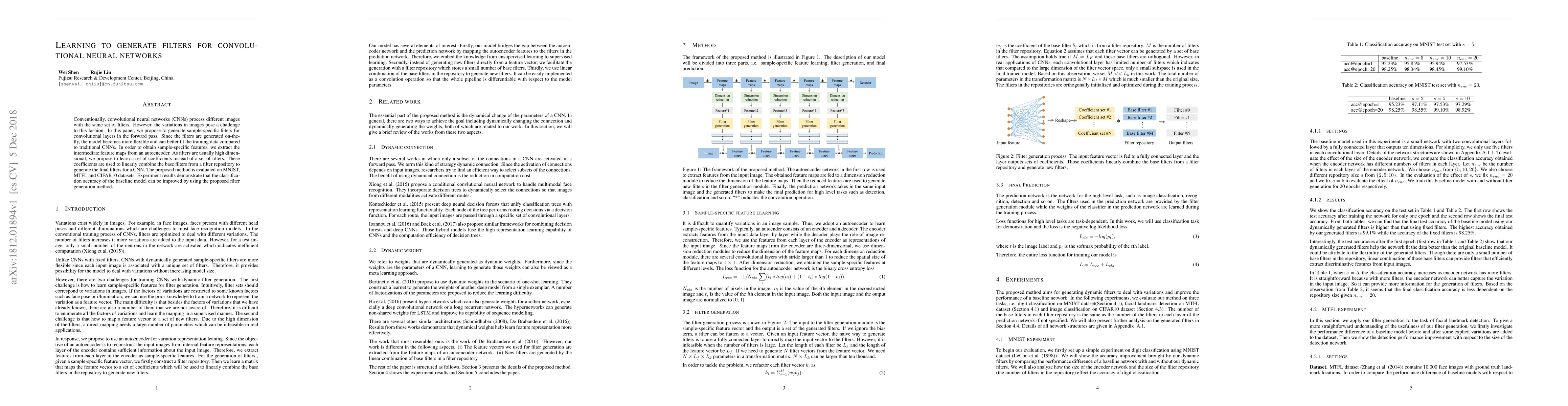 This paper proposes a method to generate sample-specific filters for convolutional neural networks (CNNs) during the forward pass, enhancing the model's flexibility and accuracy. The method uses coefficients to combine base filters from a repository, improving classification accuracy on MNIST, MTFL, and CIFAR10 datasets.