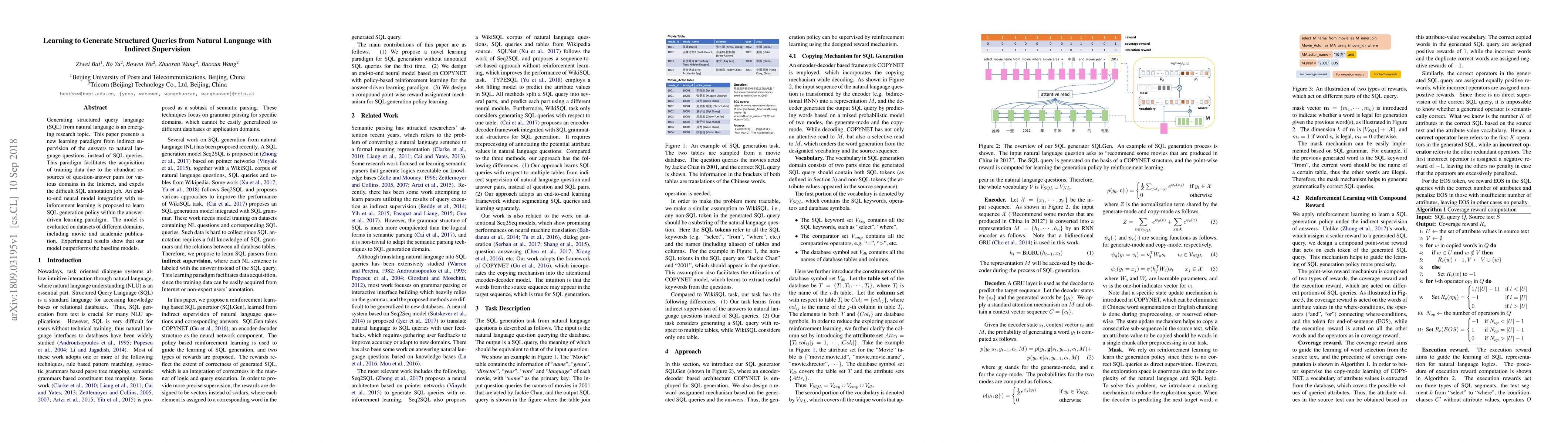 This paper introduces a new method for generating SQL queries from natural language using indirect supervision via question-answer pairs, eliminating the need for direct SQL query annotations. An end-to-end neural model with reinforcement learning achieves superior performance compared to baseline models across various domains.