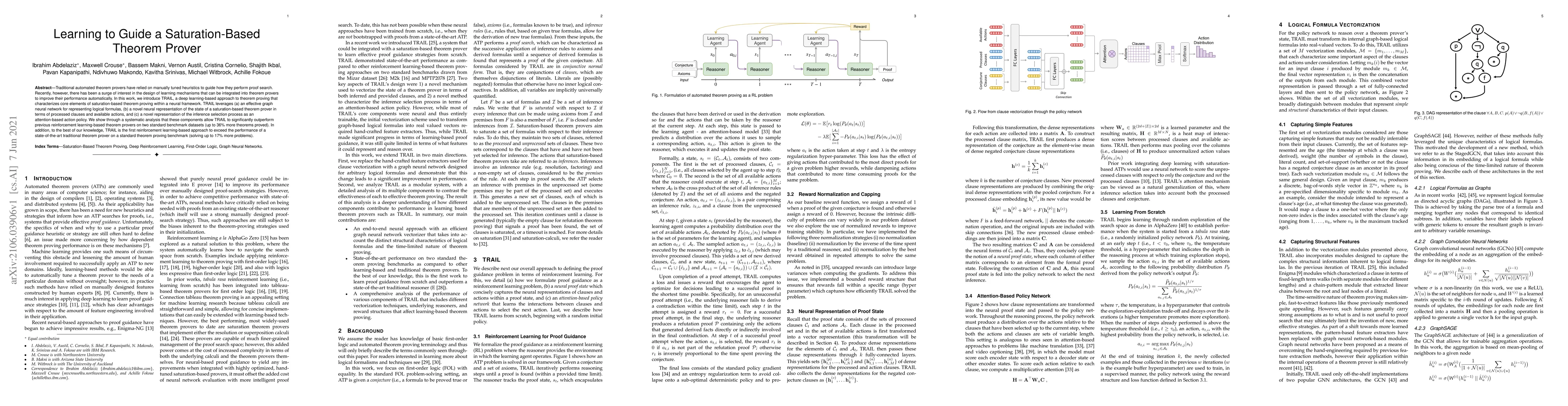 This paper introduces TRAIL, a deep learning-based theorem prover that uses a graph neural network and attention-based action policy to outperform traditional heuristic-based methods and other reinforcement learning-based provers on standard benchmarks. TRAIL represents logical formulas and the state of the theorem prover, achieving up to 36% more theorems proved and 17% more problems solved than state-of-the-art traditional provers.
