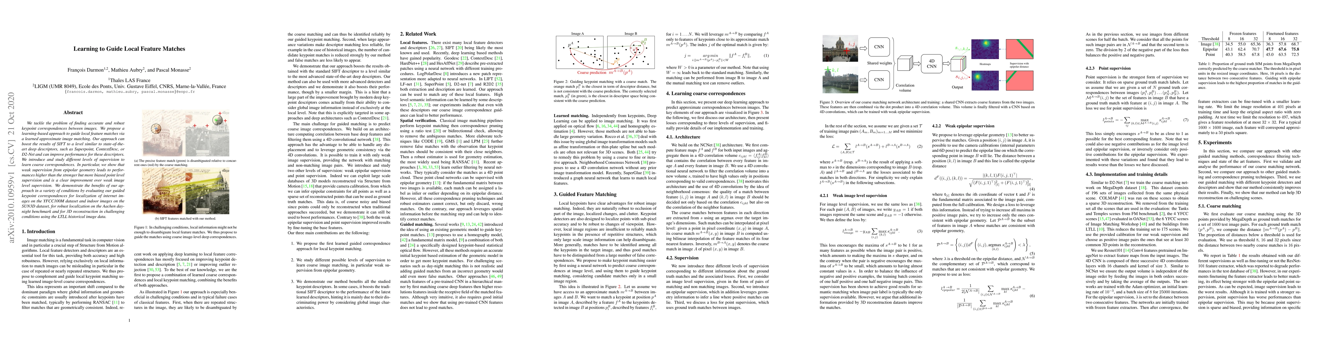 We tackle the problem of finding accurate and robust keypoint correspondences between images. We propose a learning-based approach to guide local feature matches via a learned approximate image matching. Our approach can boost the results of SIFT to a level similar to state-of-the-art deep descriptors, such as Superpoint, ContextDesc, or D2-Net and can improve performance for these descriptors. We introduce and study different levels of supervision to learn coarse correspondences. In particular, we show that weak supervision from epipolar geometry leads to performances higher than the stronger but more biased point level supervision and is a clear improvement over weak image level supervision. We demonstrate the benefits of our approach in a variety of conditions by evaluating our guided keypoint correspondences for localization of internet images on the YFCC100M dataset and indoor images on theSUN3D dataset, for robust localization on the Aachen day-night benchmark and for 3D reconstruction in challenging conditions using the LTLL historical image data.