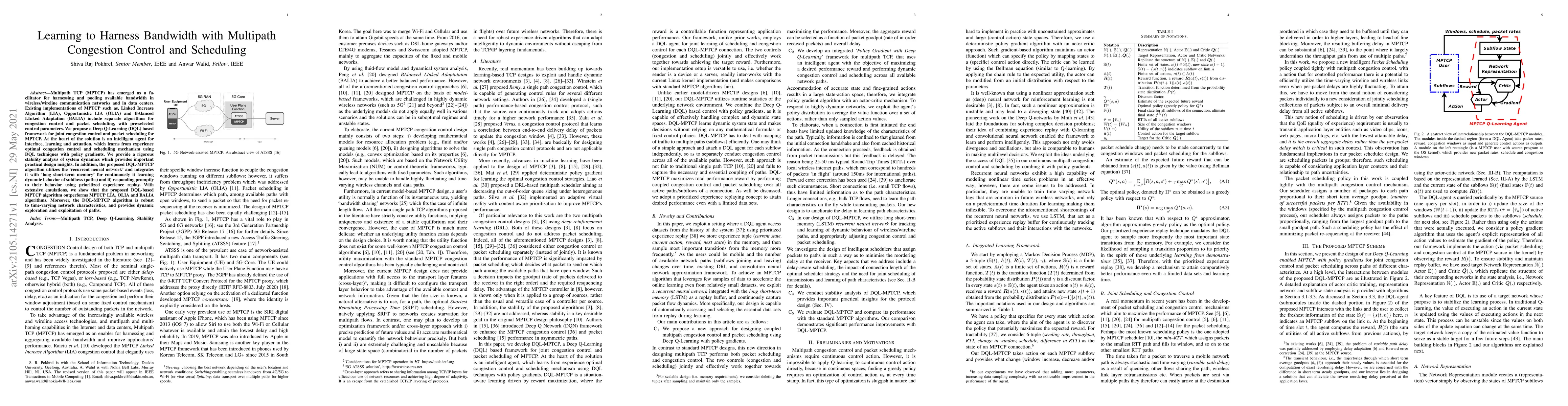 This paper proposes a Deep Q-Learning (DQL) based framework for joint congestion control and packet scheduling in Multipath TCP (MPTCP), outperforming existing algorithms through intelligent agent learning and recurrent neural networks with long short-term memory. The DQL-MPTCP algorithm demonstrates robustness and dynamic path exploration in time-varying network conditions.