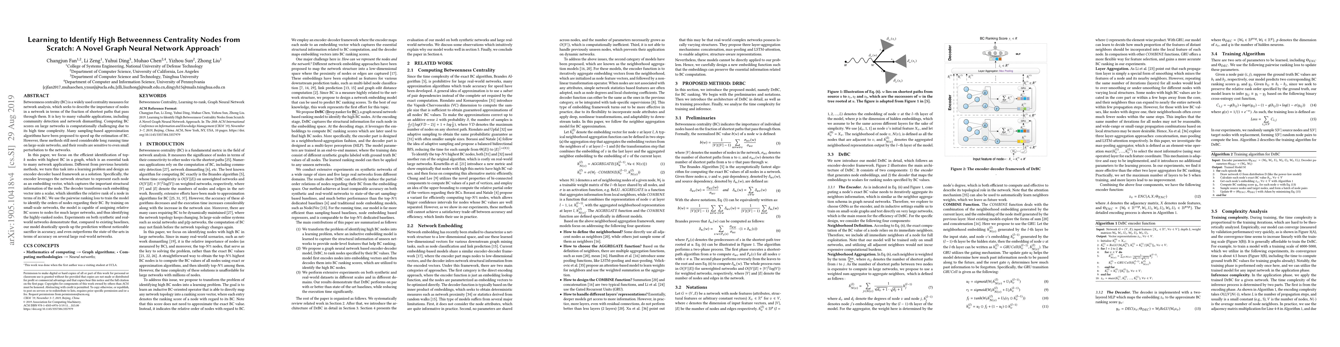 Betweenness centrality (BC) is one of the most used centrality measures for network analysis, which seeks to describe the importance of nodes in a network in terms of the fraction of shortest paths that pass through them. It is key to many valuable applications, including community detection and network dismantling. Computing BC scores on large networks is computationally challenging due to high time complexity. Many approximation algorithms have been proposed to speed up the estimation of BC, which are mainly sampling-based. However, these methods are still prone to considerable execution time on large-scale networks, and their results are often exacerbated when small changes happen to the network structures. In this paper, we focus on identifying nodes with high BC in a graph, since many application scenarios are built upon retrieving nodes with top-k BC. Different from previous heuristic methods, we turn this task into a learning problem and design an encoder-decoder based framework to resolve the problem. More specifcally, the encoder leverages the network structure to encode each node into an embedding vector, which captures the important structural information of the node. The decoder transforms the embedding vector for each node into a scalar, which captures the relative rank of this node in terms of BC. We use the pairwise ranking loss to train the model to identify the orders of nodes regarding their BC. By training on small-scale networks, the learned model is capable of assigning relative BC scores to nodes for any unseen networks, and thus identifying the highly-ranked nodes. Comprehensive experiments on both synthetic and real-world networks demonstrate that, compared to representative baselines, our model drastically speeds up the prediction without noticeable sacrifce in accuracy, and outperforms the state-of-the-art by accuracy on several large real-world networks.