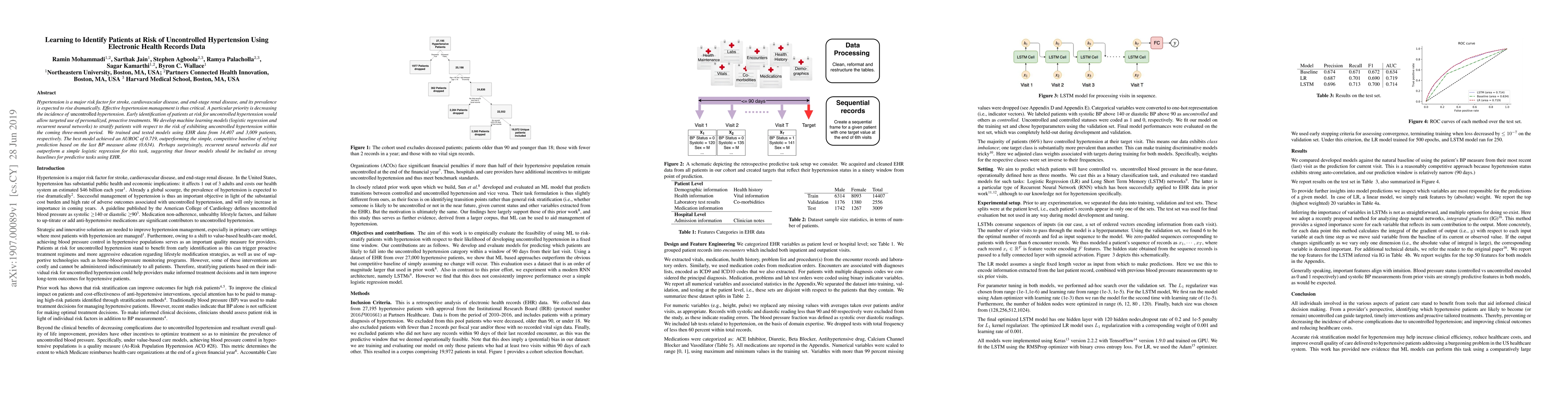 This study develops machine learning models to identify patients at risk of uncontrolled hypertension using electronic health records data. The best model, a logistic regression, achieved an AUROC of 0.719, outperforming a baseline model based on the last BP measure, indicating effective early identification potential.