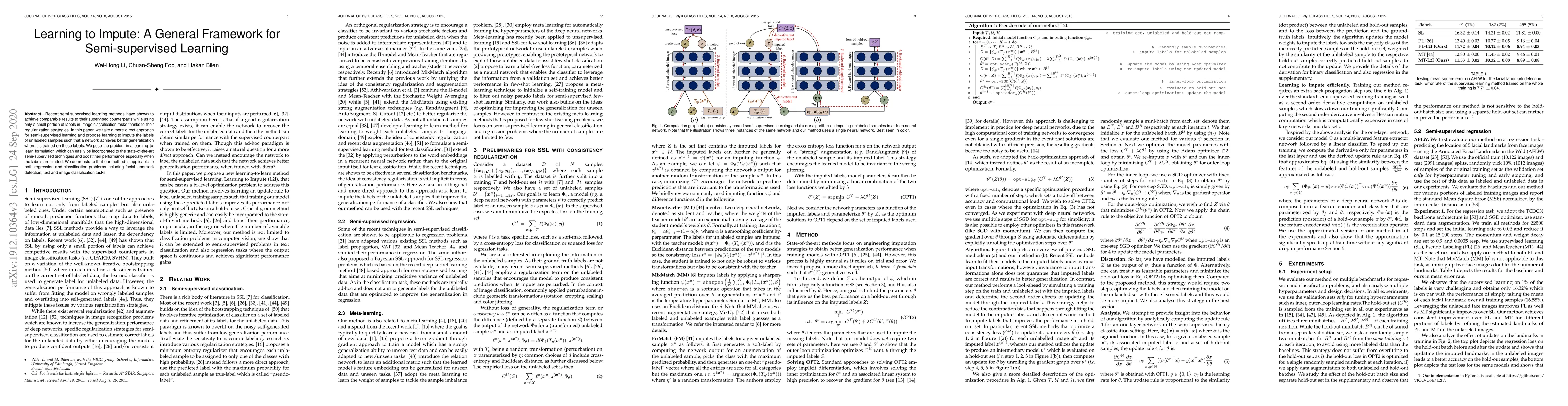 This paper proposes a new approach to semi-supervised learning that learns to impute labels for unlabeled samples, improving generalization performance, especially when labels are limited.