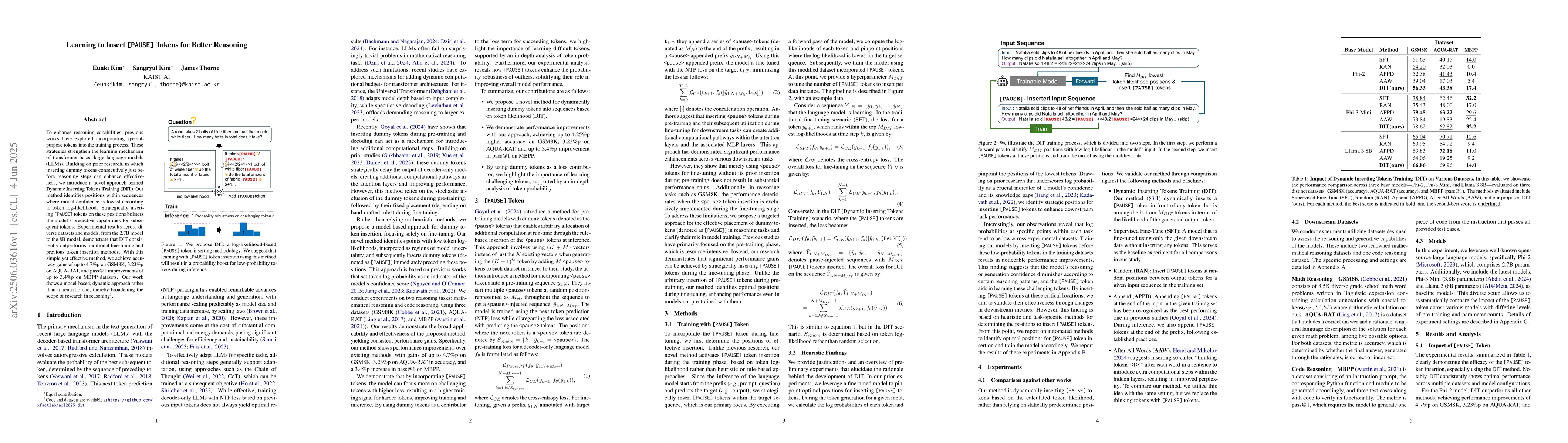 A new method called Dynamic Inserting Tokens Training (DIT) improves reasoning capabilities in large language models by strategically inserting [PAUSE] tokens at positions of lowest model confidence, leading to accuracy gains up to 4.7% on certain datasets.