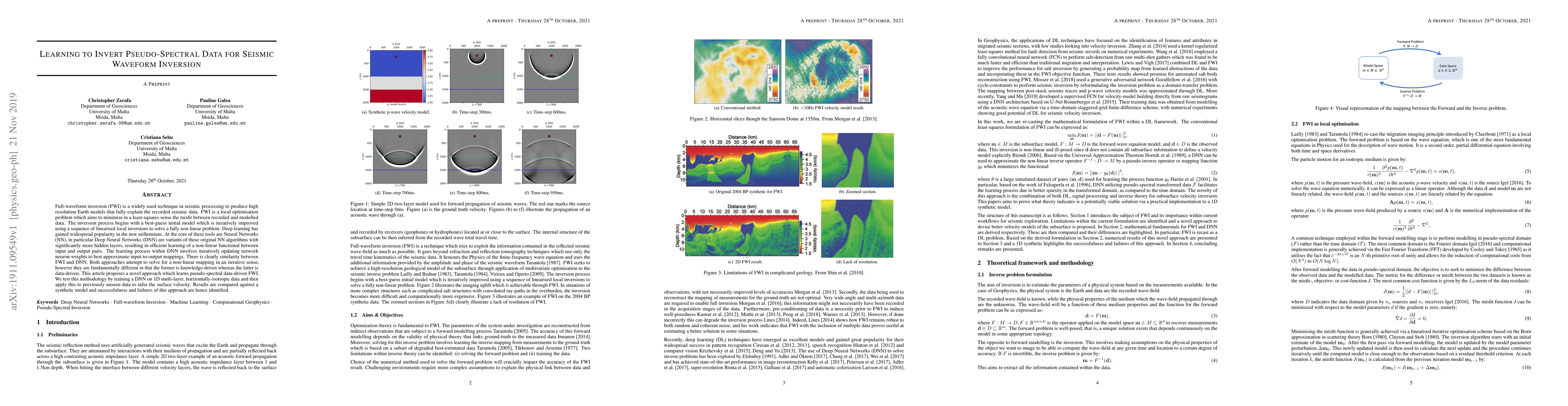 Full-waveform inversion (FWI) is a widely used technique in seismic processing to produce high resolution Earth models that fully explain the recorded seismic data. FWI is a local optimisation problem which aims to minimise in a least-squares sense the misfit between recorded and modelled data. The inversion process begins with a best-guess initial model which is iteratively improved using a sequence of linearised local inversions to solve a fully non-linear problem. Deep learning has gained widespread popularity in the new millennium. At the core of these tools are Neural Networks (NN), in particular Deep Neural Networks (DNN) are variants of these original NN algorithms with significantly more hidden layers, resulting in efficient learning of a non-linear functional between input and output pairs. The learning process within DNN involves iteratively updating network neuron weights to best approximate input-to-output mappings. There is clearly similarity between FWI and DNN. Both approaches attempt to solve for a non-linear mapping in an iterative sense, however they are fundamentally different in that the former is knowledge-driven whereas the latter is data-driven. This article proposes a novel approach which learns pseudo-spectral data-driven FWI. We test this methodology by training a DNN on 1D multi-layer, horizontally-isotropic data and then apply this to previously unseen data to infer the surface velocity. Results are compared against a synthetic model and successfulness and failures of this approach are hence identified.