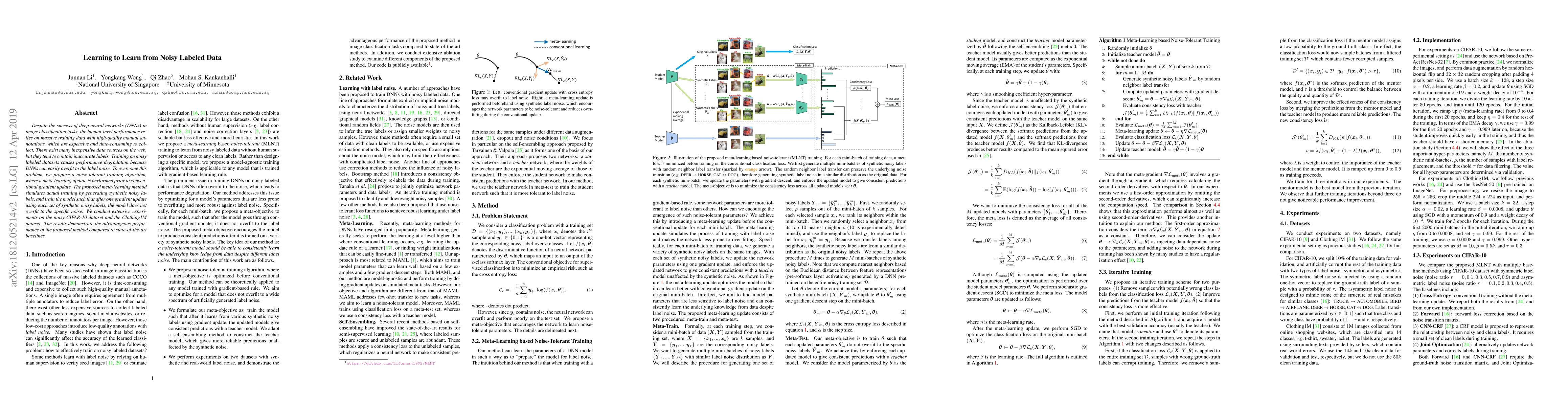 This paper proposes a noise-tolerant training algorithm to improve deep neural networks' performance on datasets with inaccurate labels. It uses meta-learning to generate synthetic noisy labels, helping the model avoid overfitting to the specific noise, and demonstrates superior results on CIFAR-10 and Clothing1M datasets compared to state-of-the-art methods.