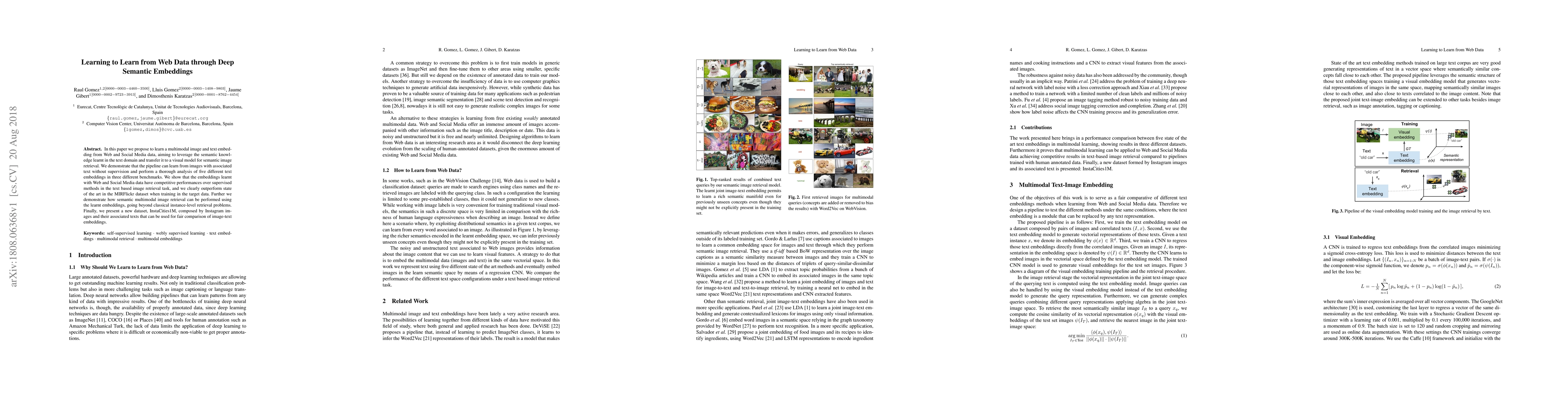 This paper proposes a method to create multimodal image and text embeddings from Web and Social Media data, enabling the transfer of semantic knowledge from text to visual models for improved semantic image retrieval. The approach demonstrates competitive performance against supervised methods and introduces a new dataset, InstaCities1M, for benchmarking image-text embeddings.