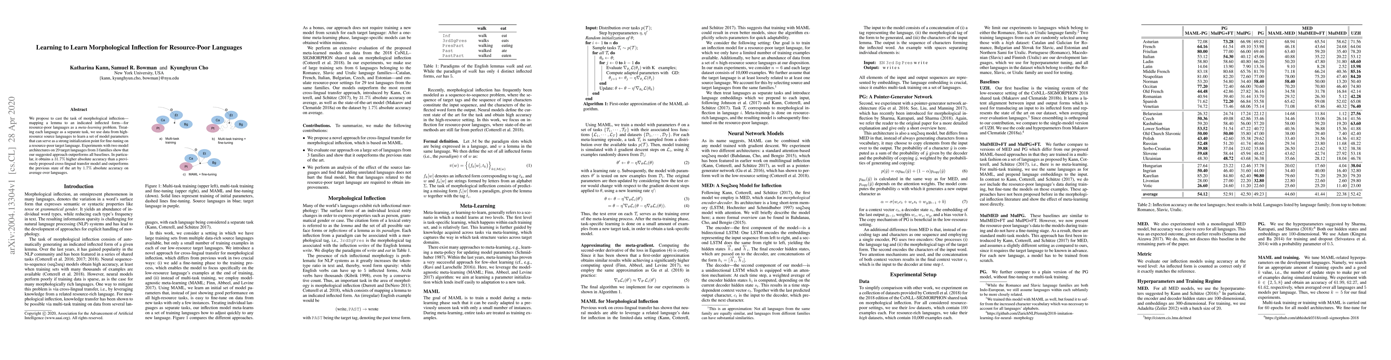 This paper proposes a meta-learning approach to tackle morphological inflection in resource-poor languages by leveraging data from high-resource languages. The method achieves superior performance over baselines, with an average 31.7% higher accuracy than previous models.
