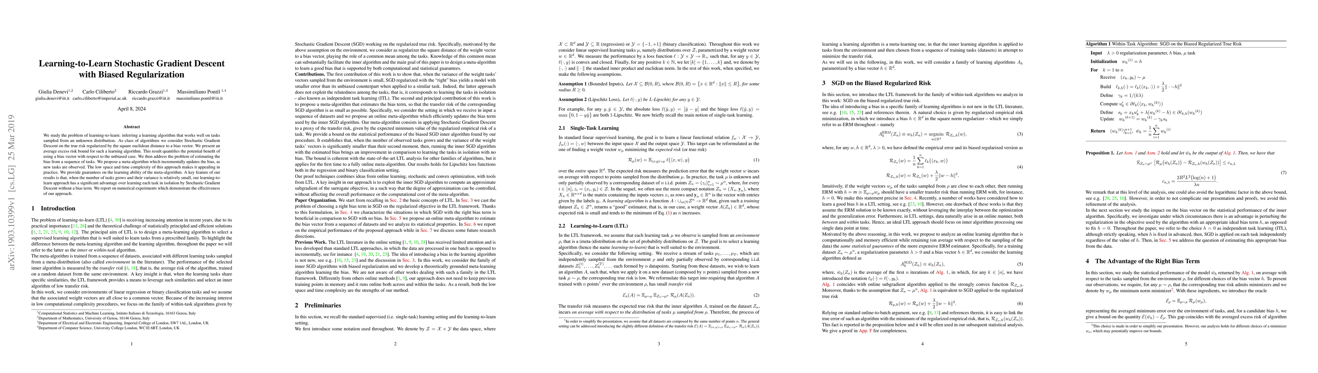 This research paper introduces a new approach to learning-to-learn using Stochastic Gradient Descent with biased regularization, showing that it can significantly outperform the unbiased case in tasks with small variance, and provides guarantees on its learning ability.