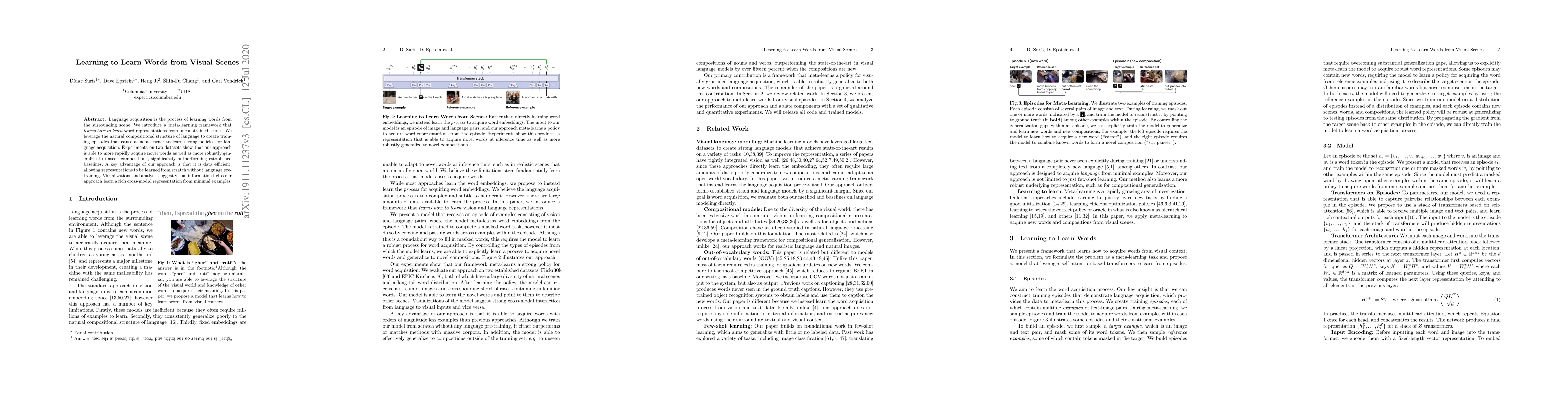This paper proposes a meta-learning framework to rapidly acquire novel word representations from visual scenes, leveraging the compositional structure of language. The approach demonstrates superior performance in learning and generalizing to unseen word combinations, with notable data efficiency and minimal reliance on pre-trained language models.