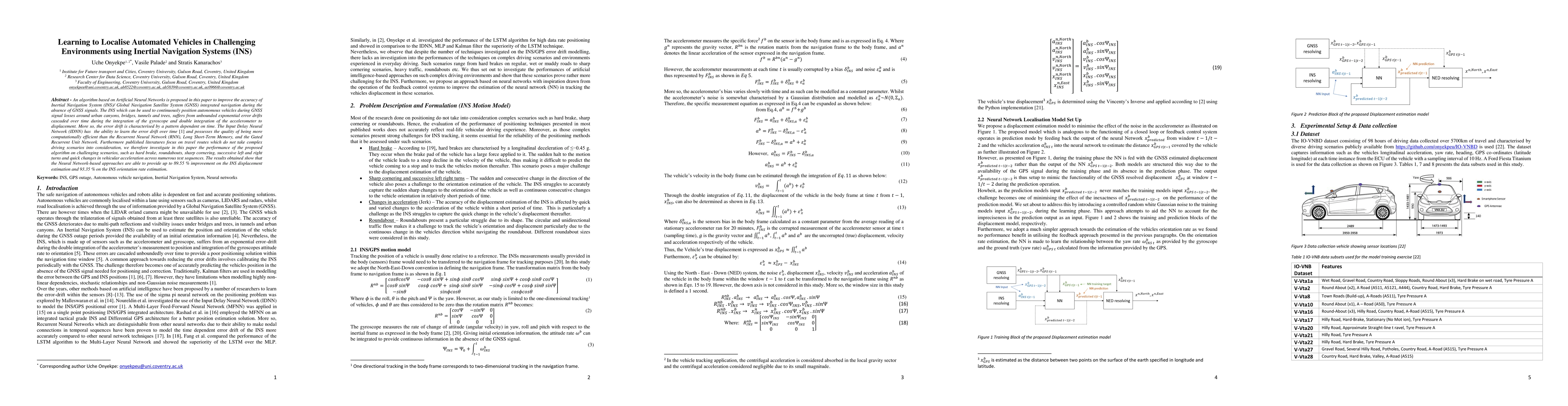 A novel deep learning approach was presented for integrating GPS/INS data, achieving accurate localization results with a mean error of 3.2 meters.