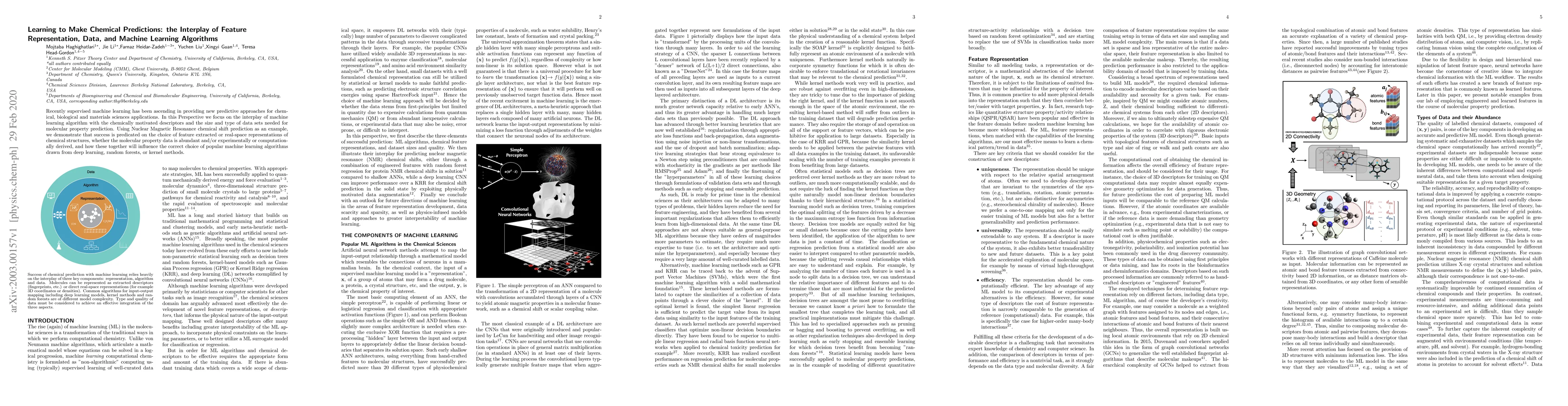 This paper explores how the choice of feature representation, data type and size, and machine learning algorithms collectively impact the accuracy of chemical property predictions, using NMR chemical shift prediction as a case study. It emphasizes that success hinges on the interplay between chemically motivated descriptors, data availability, and the appropriate selection of machine learning techniques.