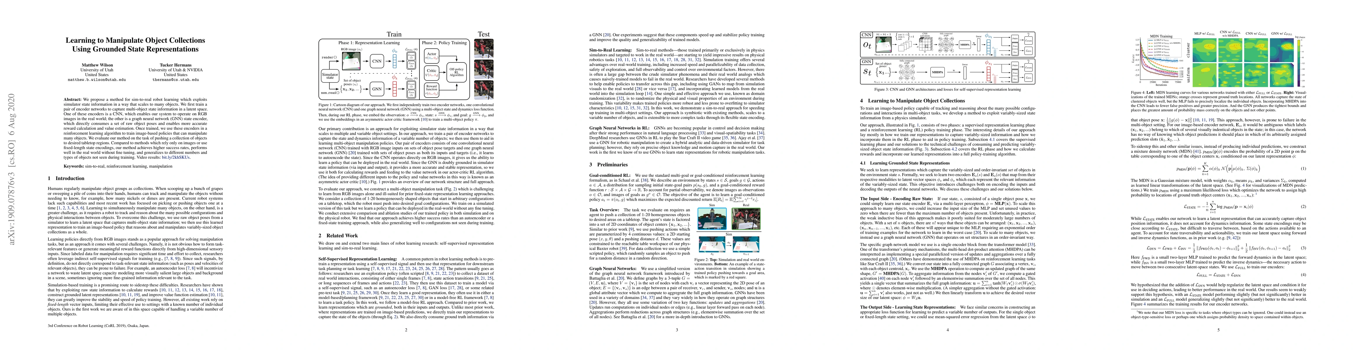 This paper proposes a method for sim-to-real robot learning using grounded state representations, employing encoder networks to capture multi-object state information. The method achieves higher success rates and better generalization to unseen objects compared to image-only or fixed-state encoding methods.