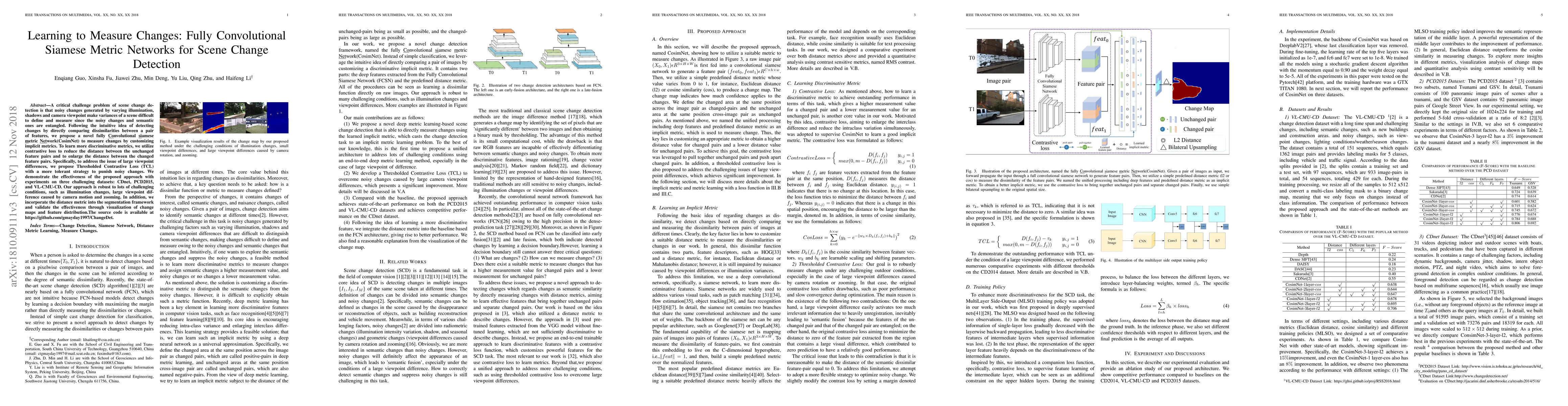 This paper proposes CosimNet, a fully convolutional siamese metric network for scene change detection, utilizing a Thresholded Contrastive Loss to distinguish between noisy and semantic changes. The method is shown to be robust to various challenging conditions through experiments on three datasets.