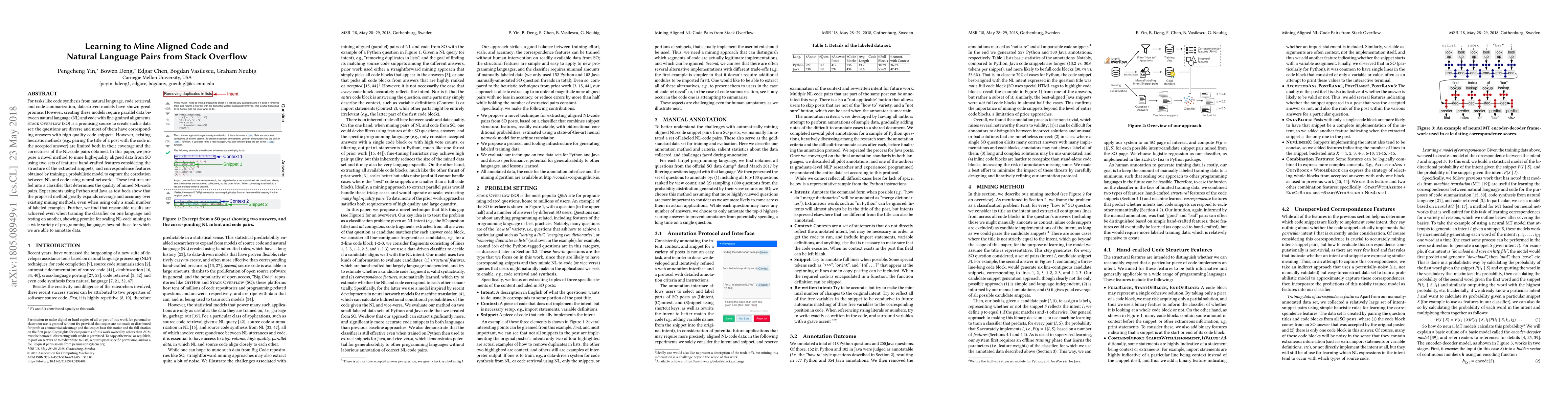 Researchers developed a method to mine high-quality aligned data from Stack Overflow questions and answers, using hand-crafted features and correspondence features learned from neural networks, to improve code synthesis, retrieval, and summarization tasks.