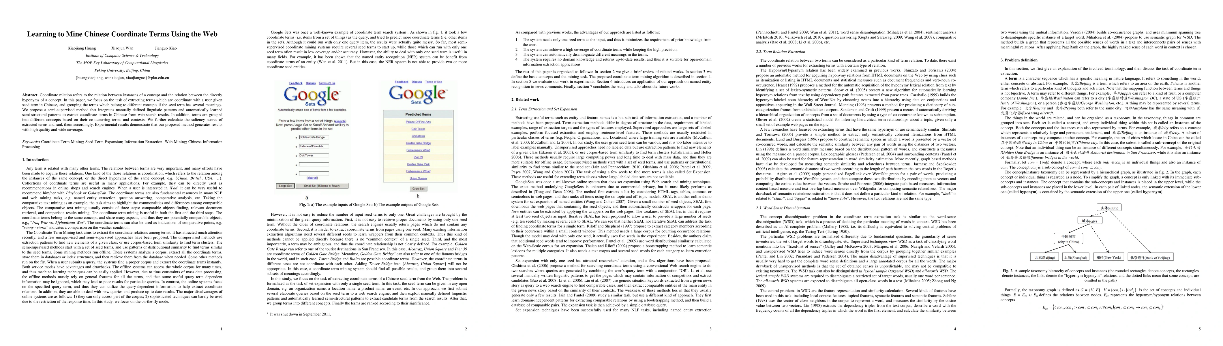 Researchers propose a semi-supervised method to extract coordinate terms in Chinese from web search results, grouping them into different concepts based on co-occurring terms and contexts.
