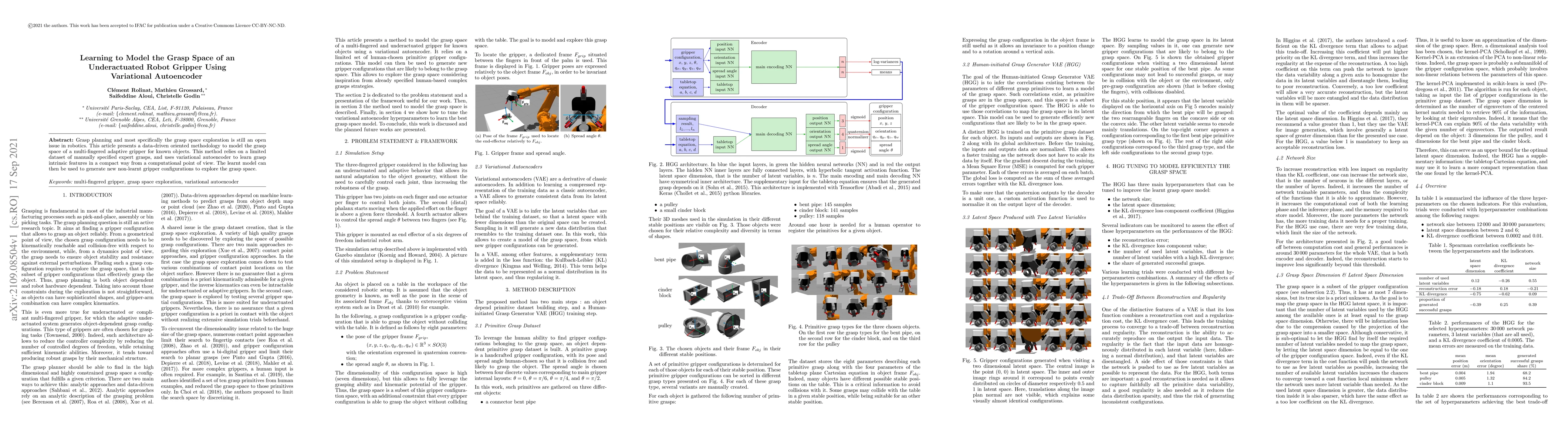 This paper proposes a data-driven approach using a variational autoencoder to model the grasp space of an underactuated robot gripper based on a limited dataset of expert grasps. The method enables the generation of new gripper configurations to explore the grasp space.