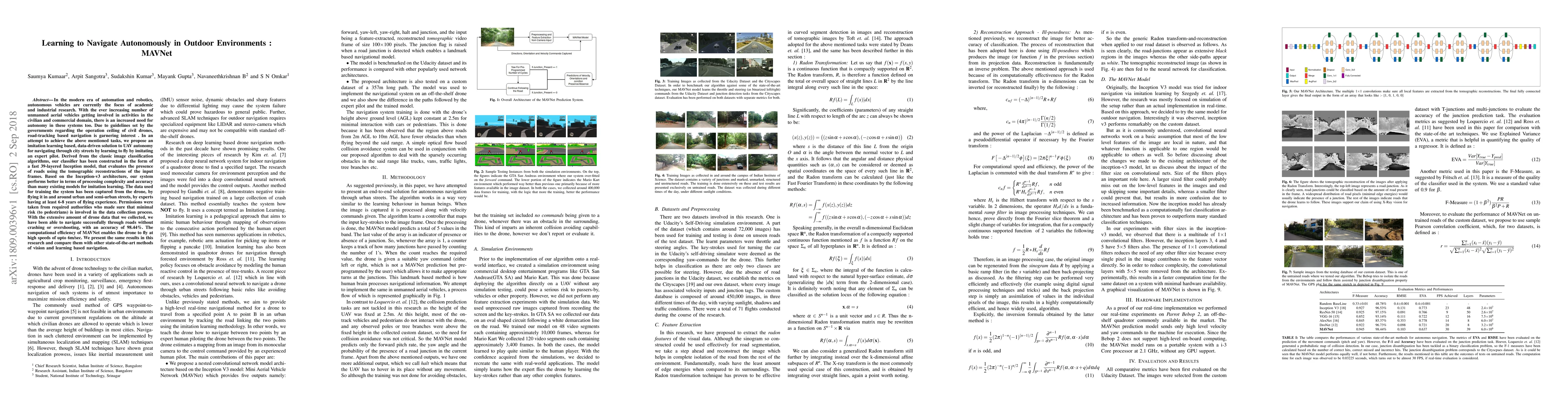 This paper proposes MAVNet, an imitation learning-based solution for autonomous UAV navigation through urban environments, utilizing a 39-layered Inception model for road detection. Trained on expert-pilot captured data, the system achieves 98.44% accuracy and high-speed navigation, outperforming existing models.