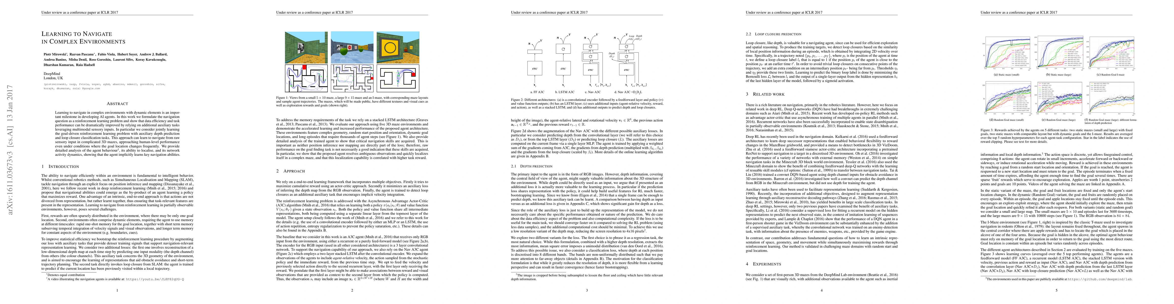 This research develops an AI agent capable of navigating complex, dynamic environments using reinforcement learning enhanced by auxiliary tasks like depth prediction and loop closure classification. The approach achieves data efficiency and high performance, enabling the agent to approach human-level navigation in 3D mazes with frequently changing goal locations.