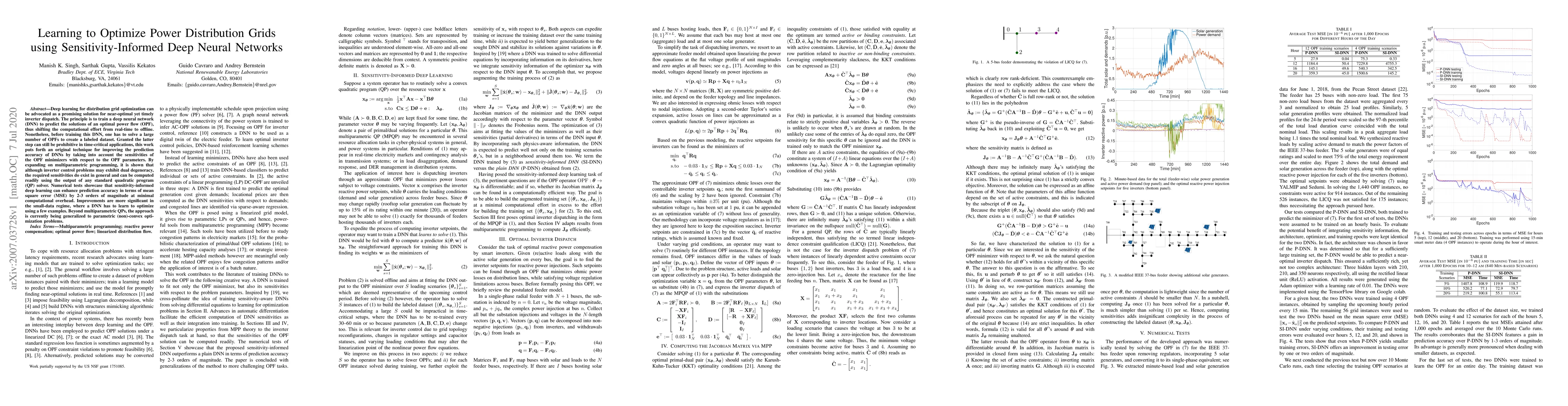 This paper proposes a method to enhance deep neural network (DNN) predictions for optimizing power distribution grids by incorporating sensitivity information from optimal power flow (OPF) parameters. The approach improves prediction accuracy by 2-3 orders of magnitude, especially when training data is limited, by utilizing sensitivities computed from standard quadratic program solvers.