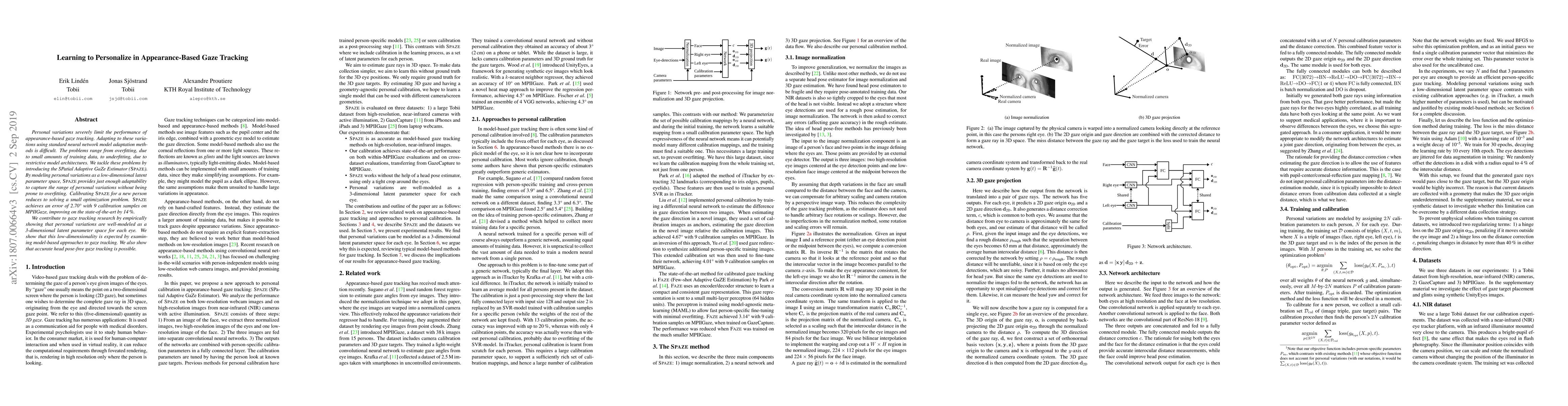 The paper introduces SPAZE, a spatial adaptive gaze estimator that models personal variations in appearance-based gaze tracking as a low-dimensional latent parameter space, achieving an error reduction of 14% on the MPIIGaze dataset with just 9 calibration samples. SPAZE demonstrates that personal variations can be effectively captured without overfitting, contributing to improved head pose-free gaze tracking.