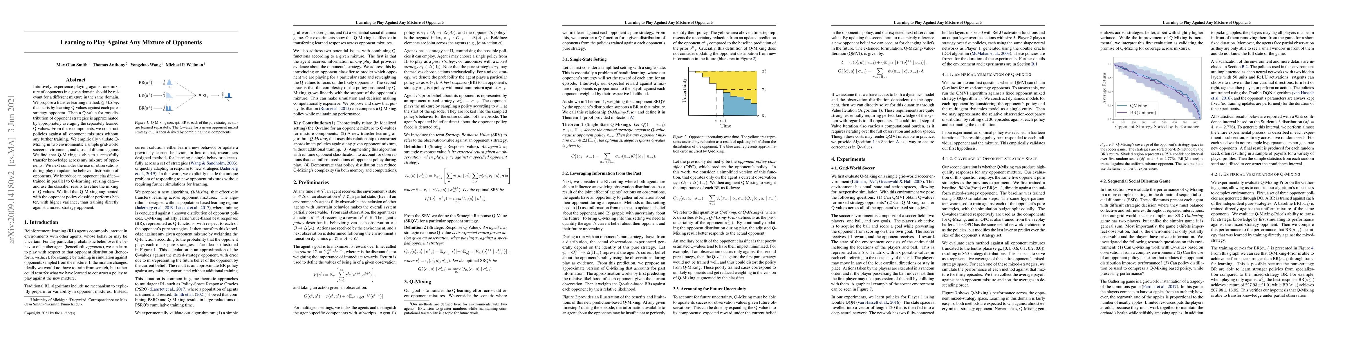 A new method called Q-Mixing enables learning to play against any mixture of opponents in a domain without additional training, successfully transferring knowledge across different opponent distributions. This approach outperforms traditional methods by refining the mixing of Q-values with an opponent classifier.